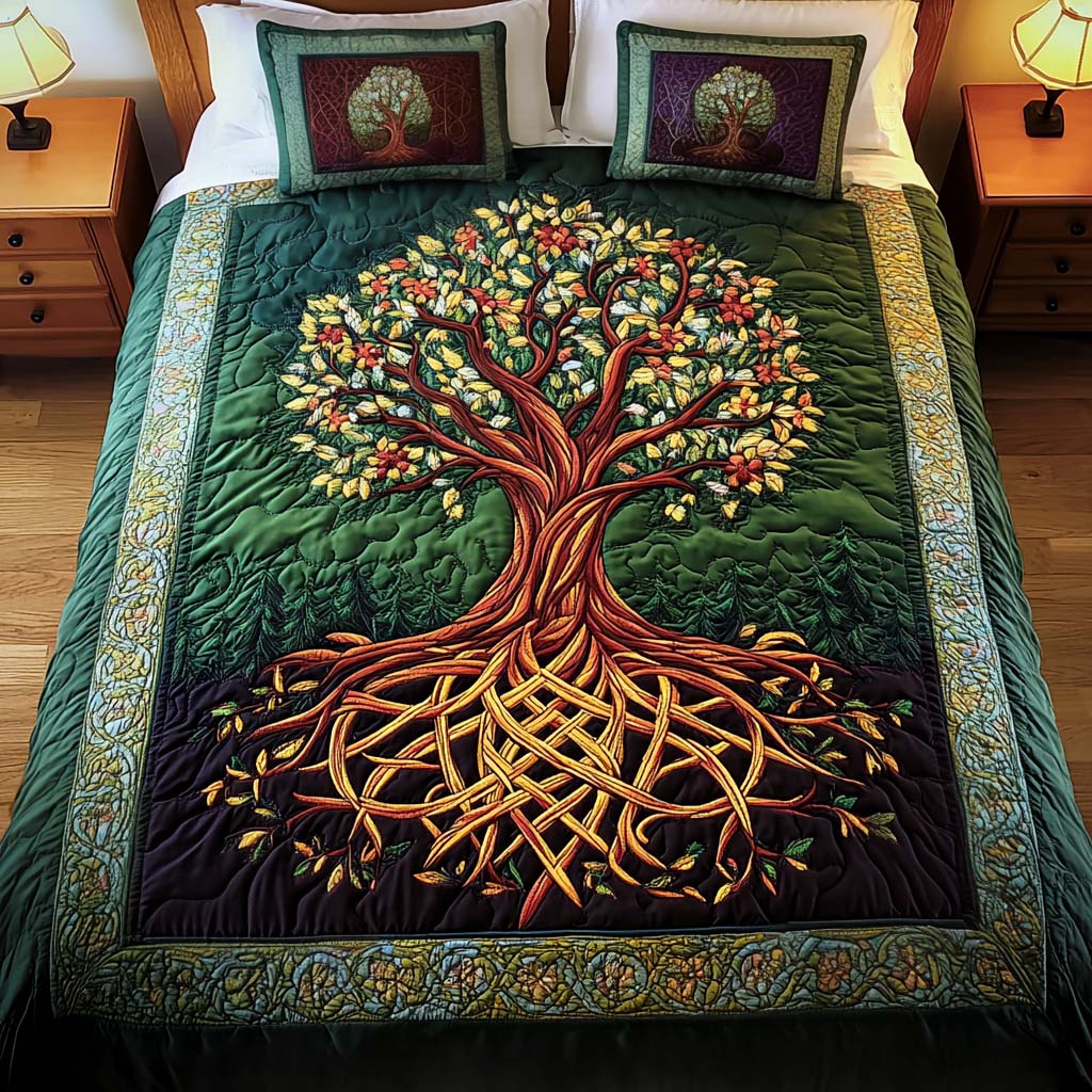 Intricate Celtic Tree of Life 3-Piece Quilted Bedding Set NCU0PD047