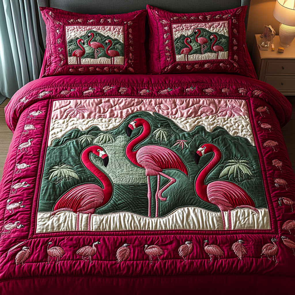 Pink Sunset 3-Piece Quilted Bedding Set NCU0DK2455