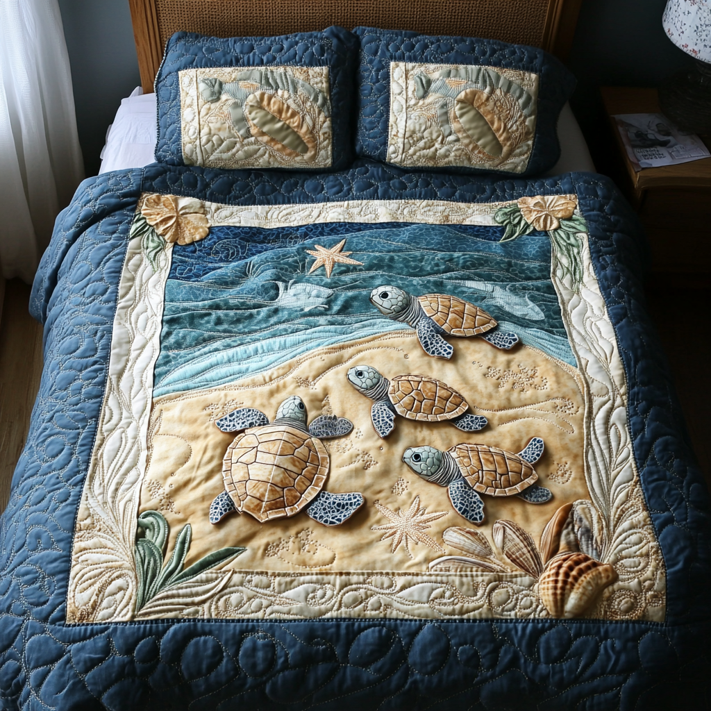 Turtle 3-Piece Quilted Bedding Set NCU0VT170