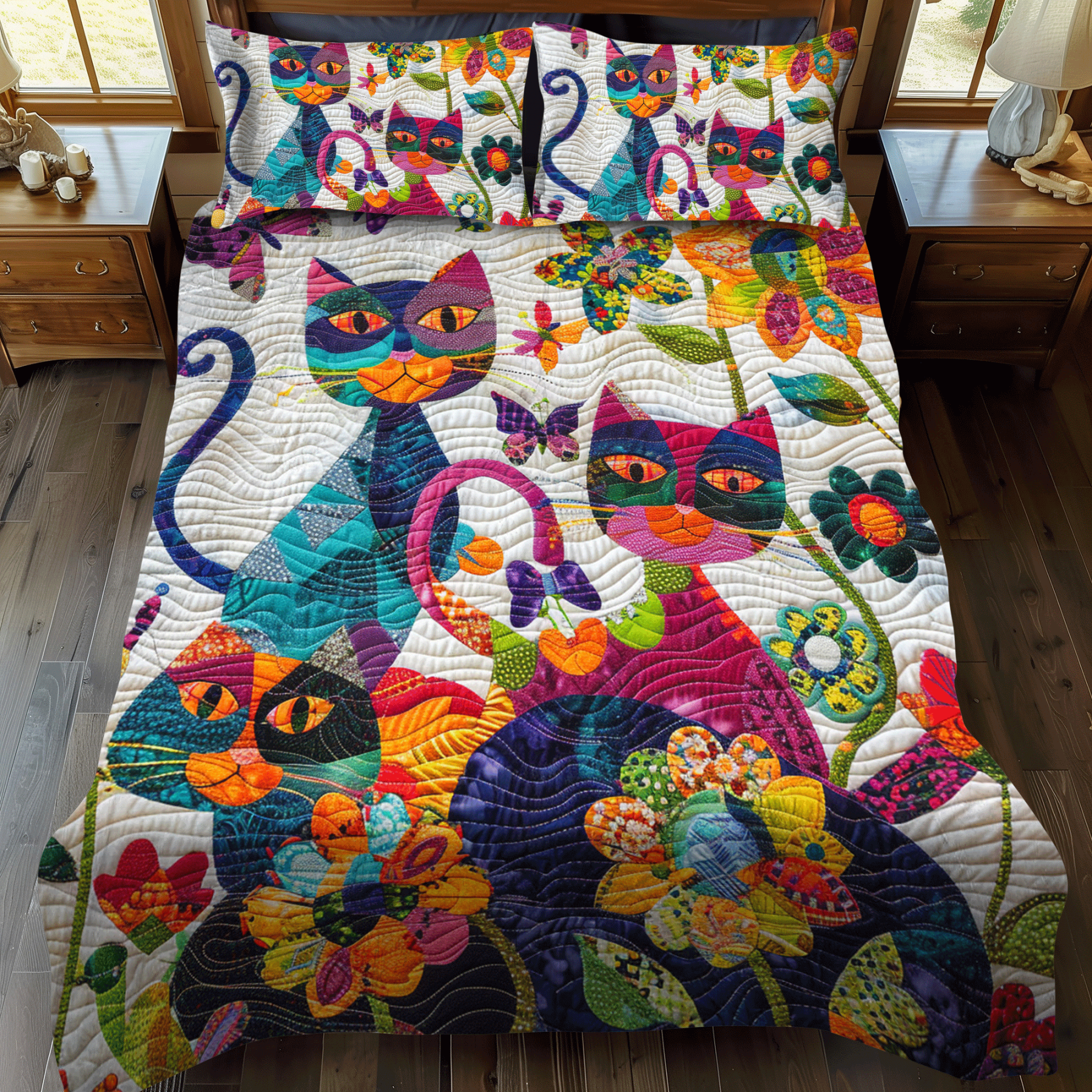 Cat 3-Piece Quilted Bedding Set NCU0VT25