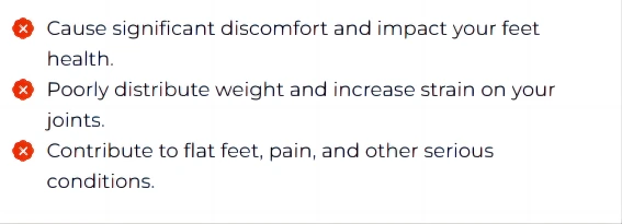 Regular insoles are often flat, thin, and lack proper foot support. This can lead to aches, chronic pain, and long-term foot health issues.