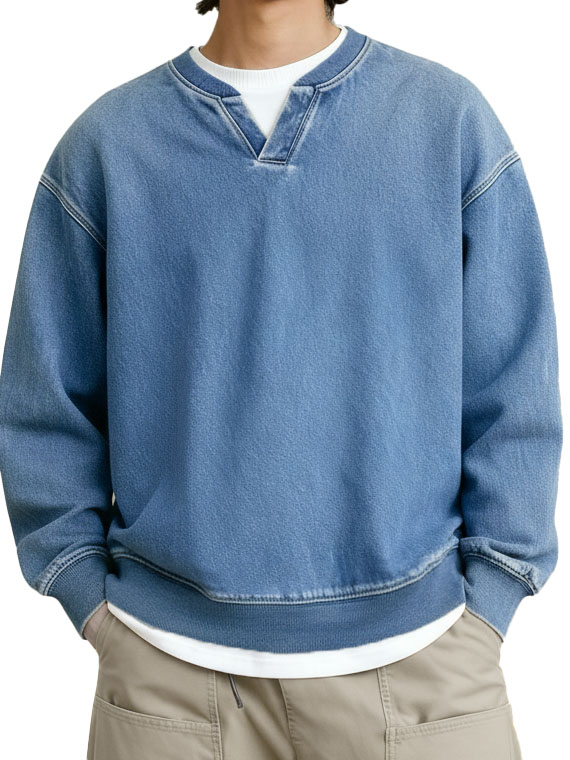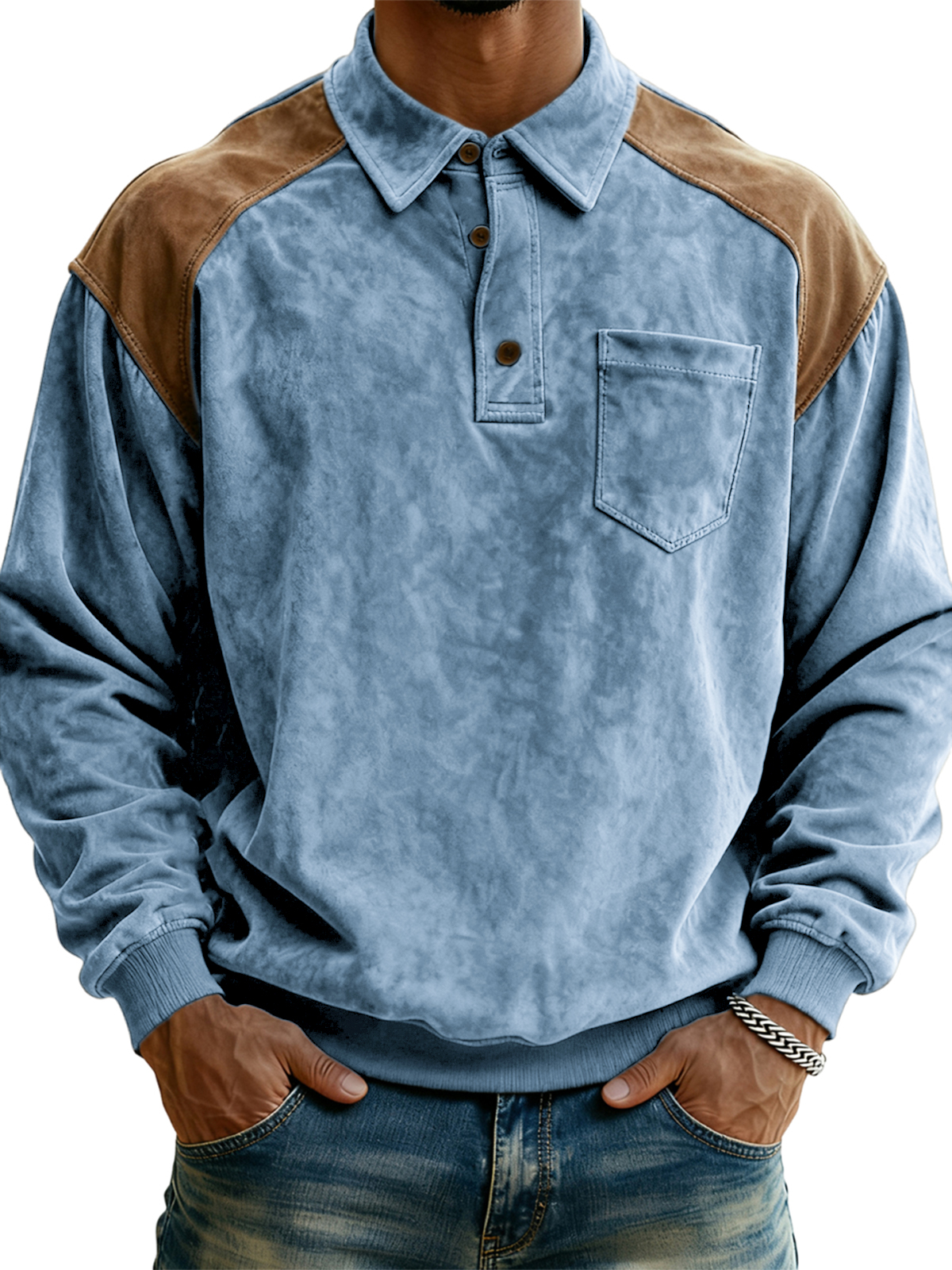 Men's Vintage Polo Sweatshirt with Contrast Suede Shoulders