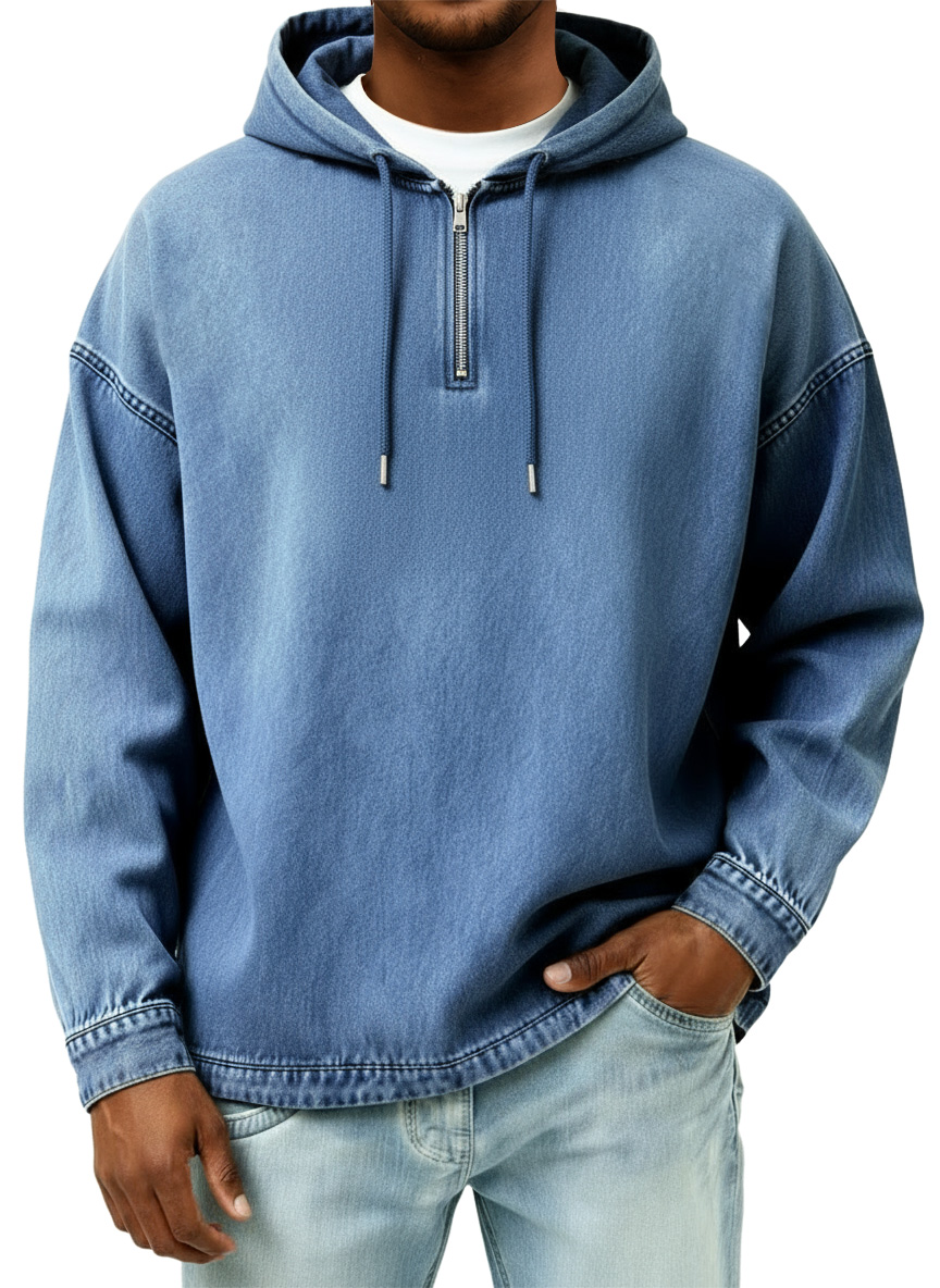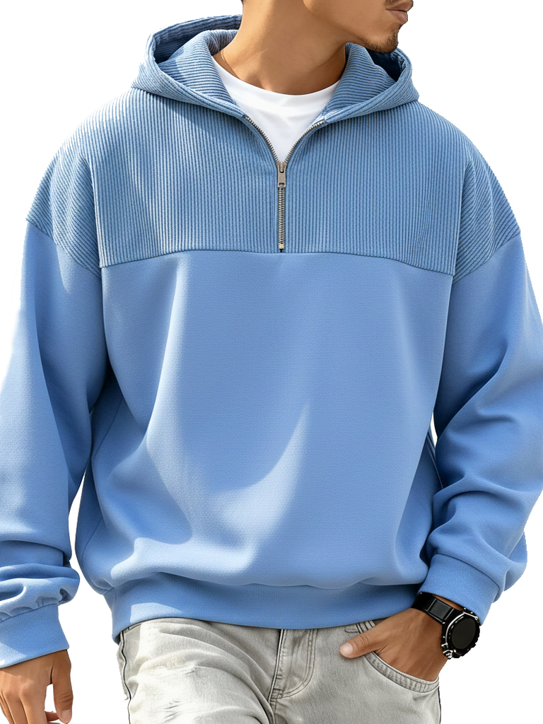 Men's Retro Casual Quarter Zip Hooded Sweatshirt
