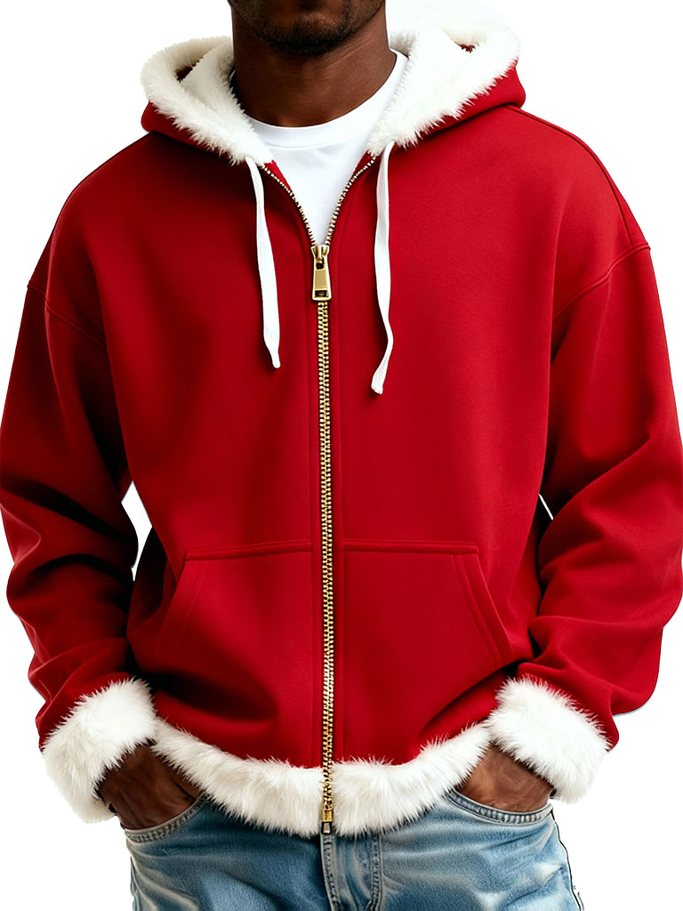 Christmas Fashionable Casual Plush Zipper Long-Sleeve Hooded Jacket