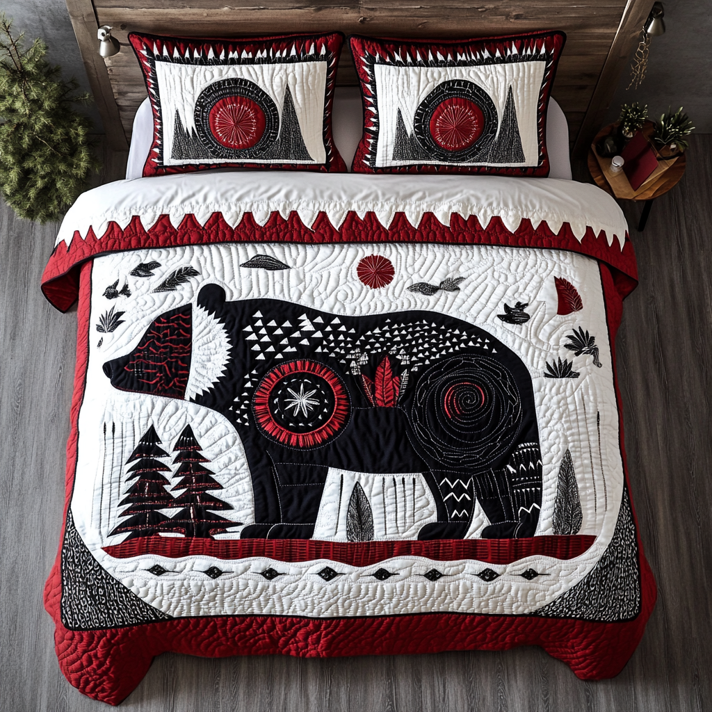Forest Path Black Bear 3-Piece Quilted Bedding Set NCU0DV8018