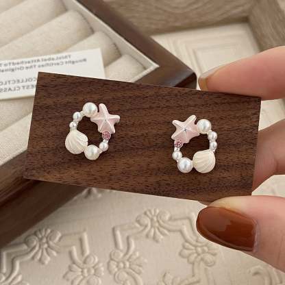 🐚Shell and Starfish Charm C-Shaped Drop Earrings⭐