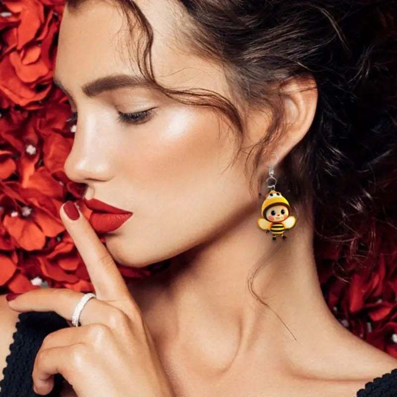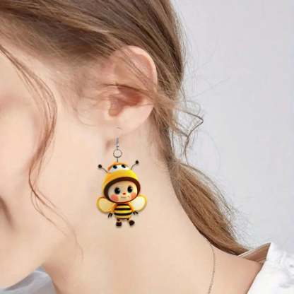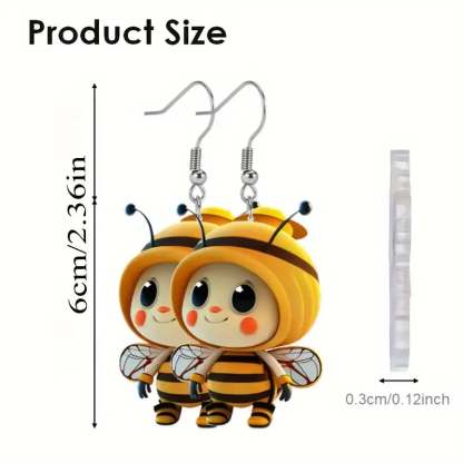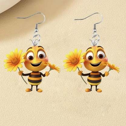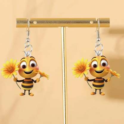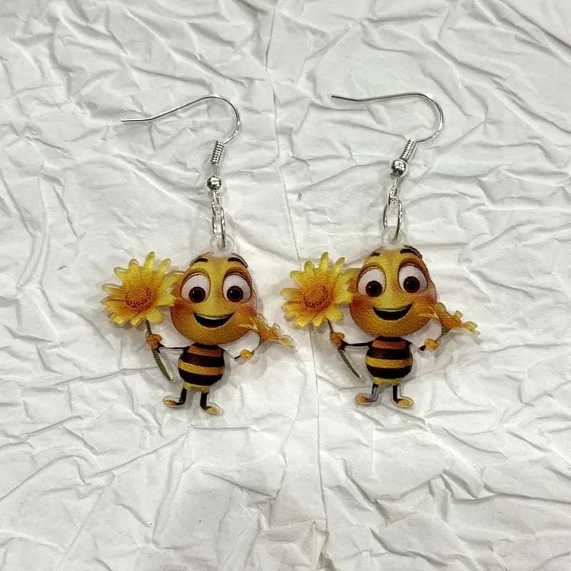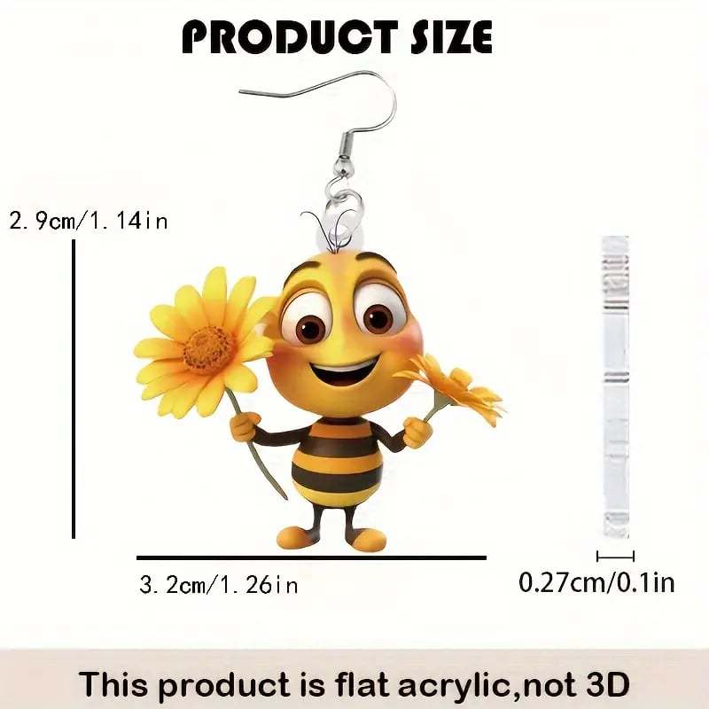 These adorable 2D dangle earrings feature a delightful sunflower design paired with a cute bee. perfect for adding a playful touch to your casual attire.