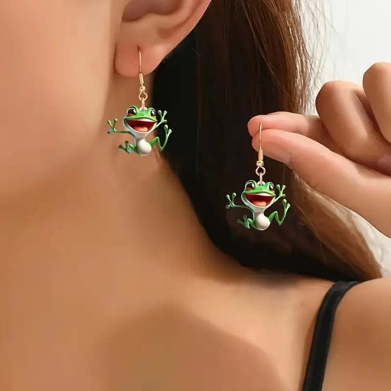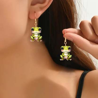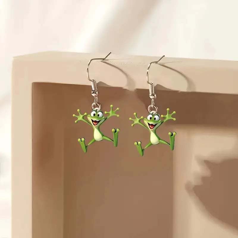 These dangle earrings feature whimsical frog designs that are sure to add a touch of fun and playfulness to any outfit.