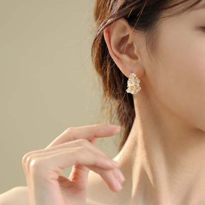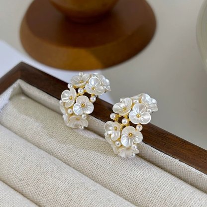 ✨ Exquisite Floral Design: Crafted with precision. each flower is delicately arranged to create a 3D effect that exudes charm and sophistication. The subtle gold plating blends seamlessly with the flowers. adding a warm glow that enhances the natural sheen of the pearls.