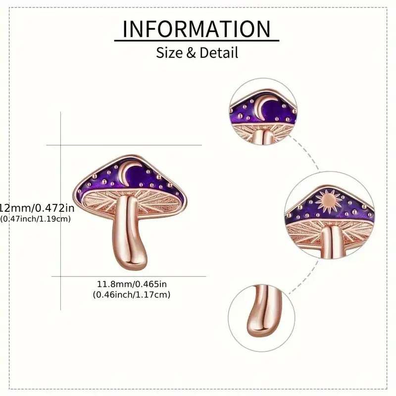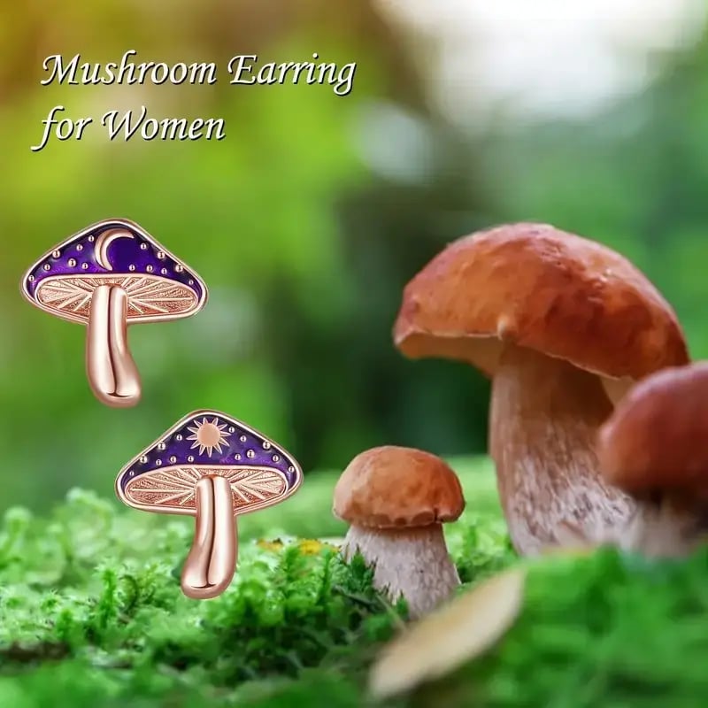 🍄These enchanting mushroom studs feature deep purple caps with golden star accents. resembling a starry night reflected on water. Playful yet elegant. they add magic to your everyday style.