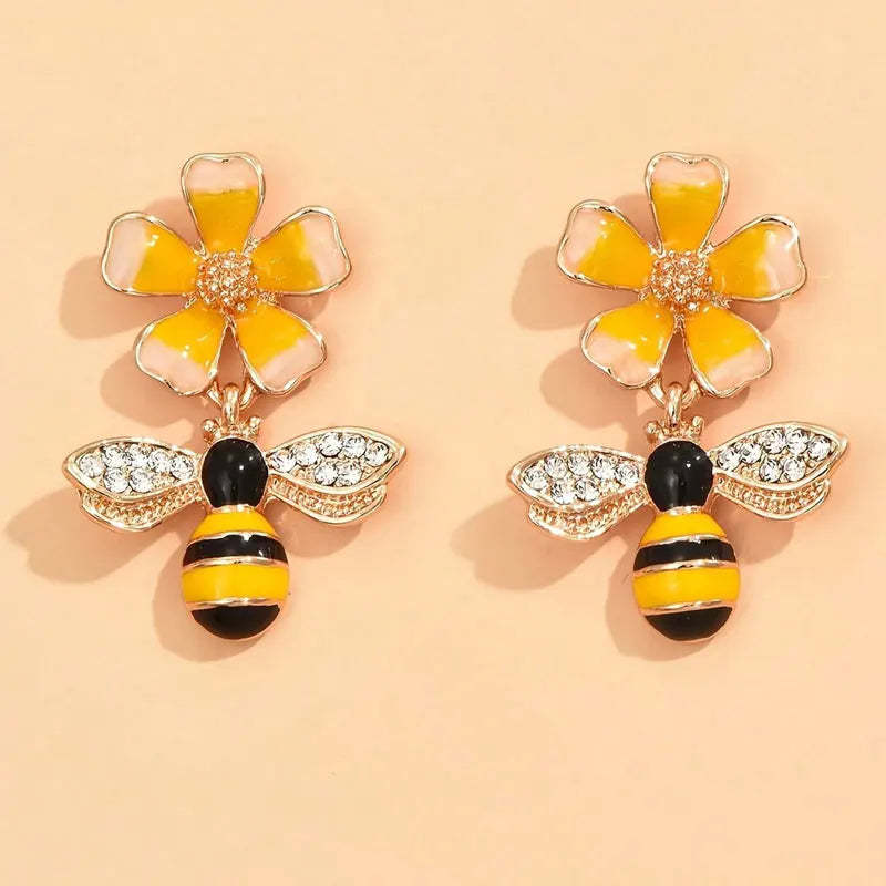 Each delicate bee seems to hover near its golden sunflower, creating a miniature celebration of summer that never fades. The sparkle of carefully placed rhinestones catches the light like morning dew, while the gentle movement of the dangles mirrors the carefree flight of these beloved pollinators.
