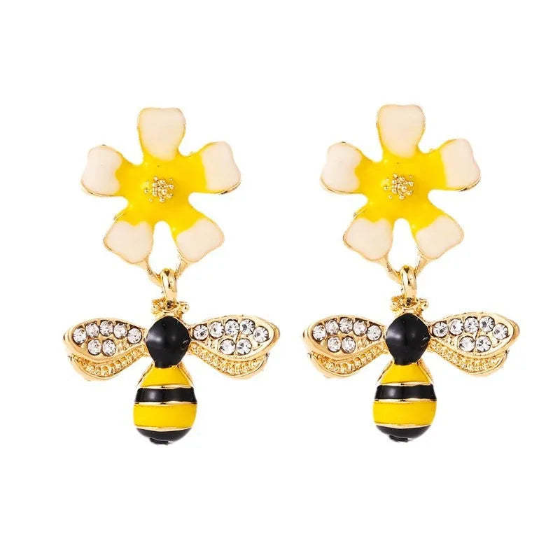 Bee & Sunflower Drop Earrings