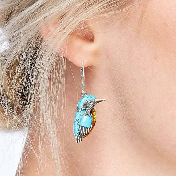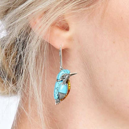 Blue Hummingbird Enamel Earrings