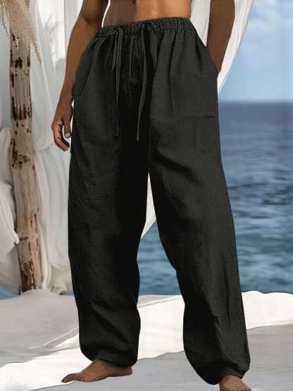 - Details: Elastic waistband with adjustable drawstring, two slant pockets