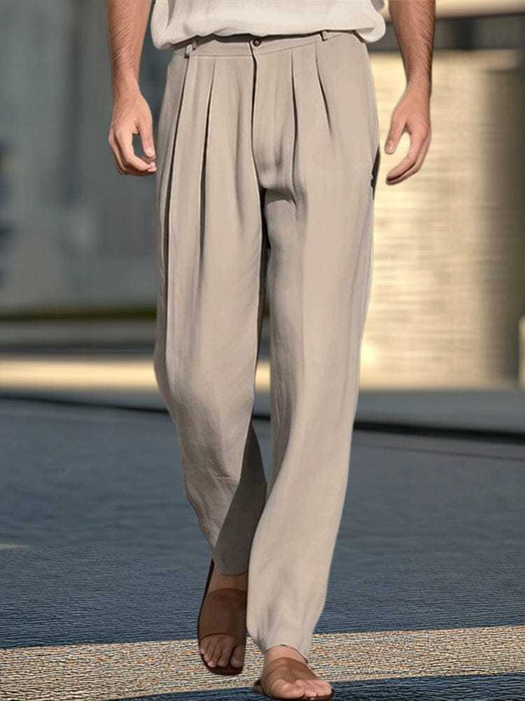 Cotton Linen Pleated Wide-Leg Trousers
