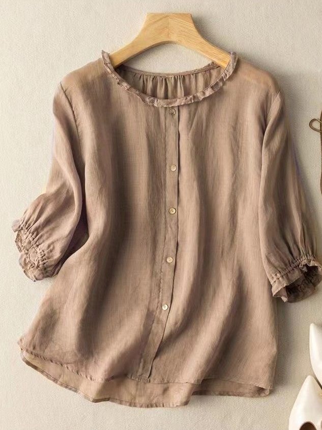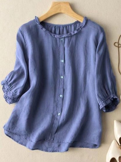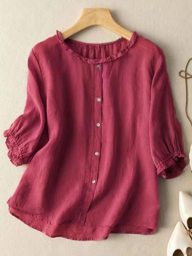 Solid Print Button Decor Long Sleeve Stylish Women Shirt