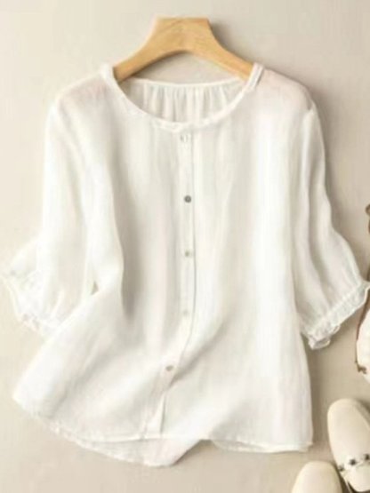 Women’s Cotton Linen Polo Shirt – Casual Short Sleeve Summer Top