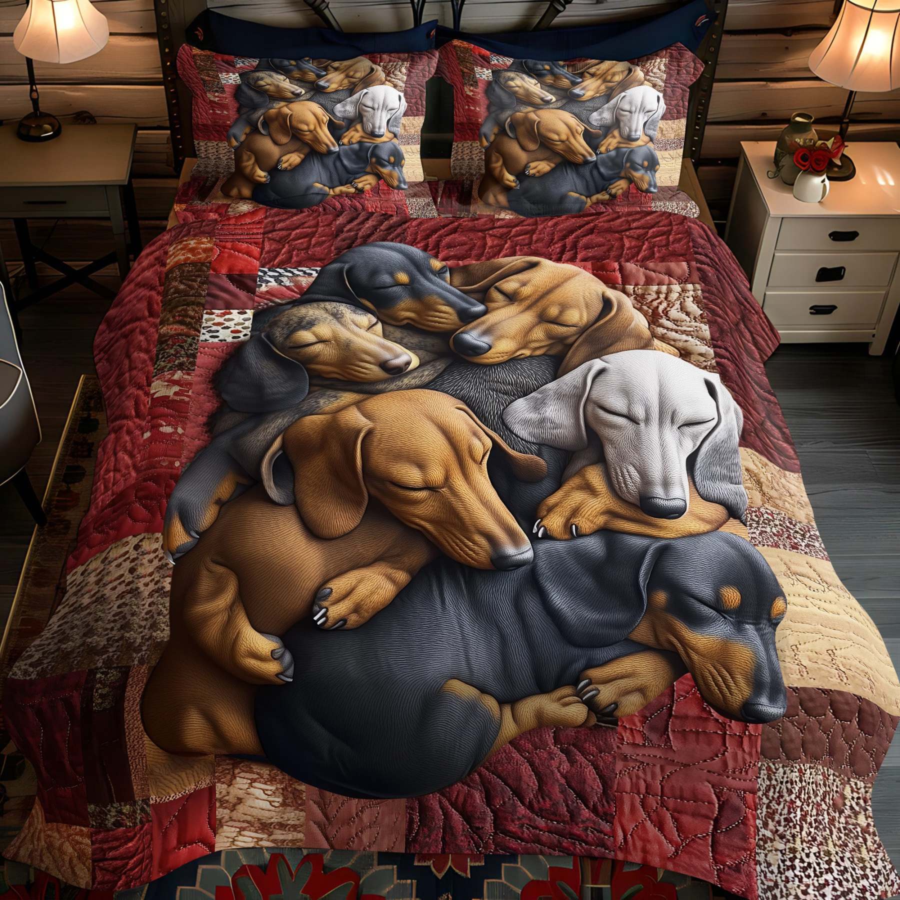 Dachshund Delight 3-Piece Quilted Bedding Set NCU0PT2898