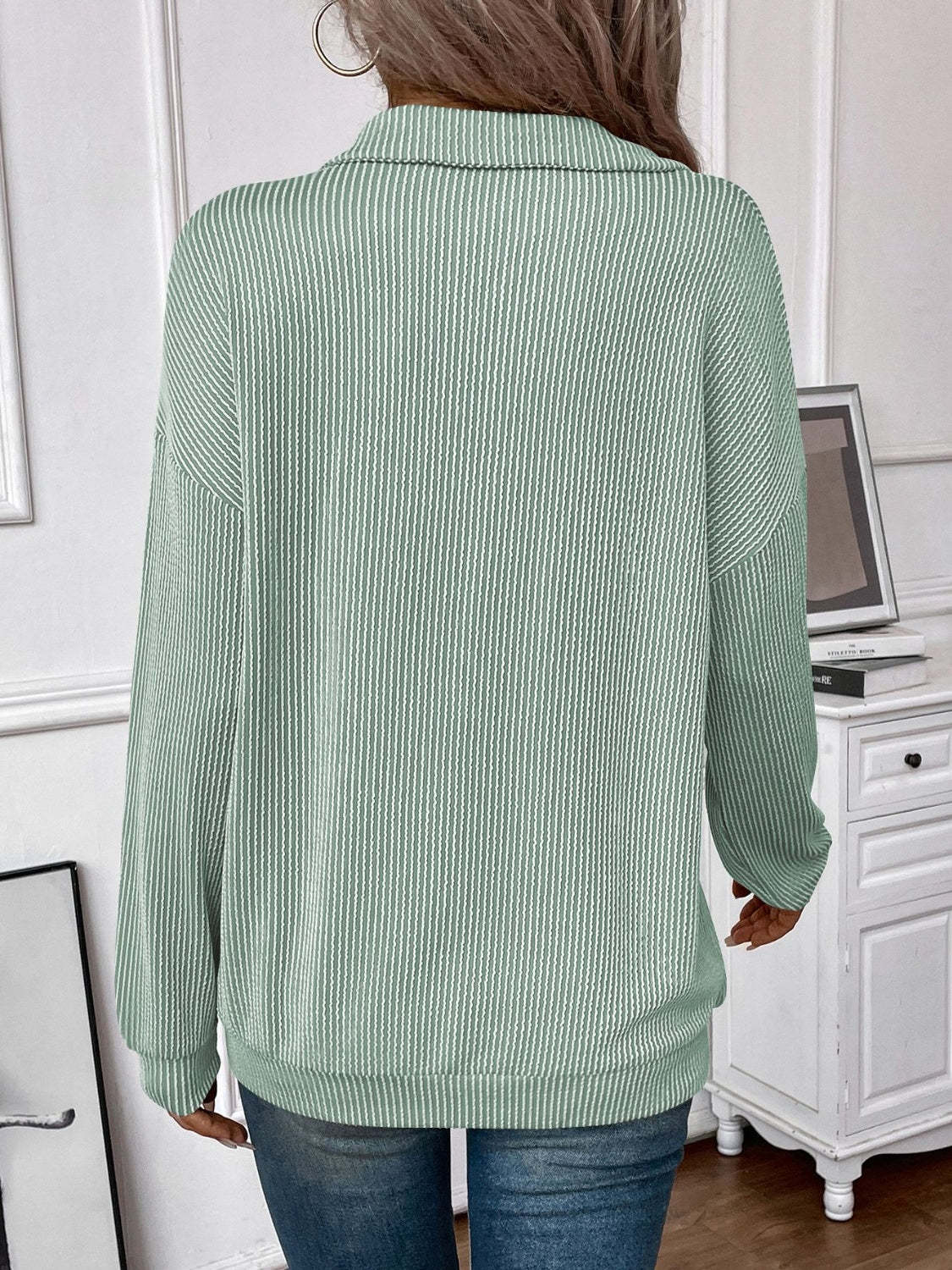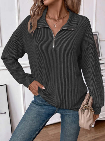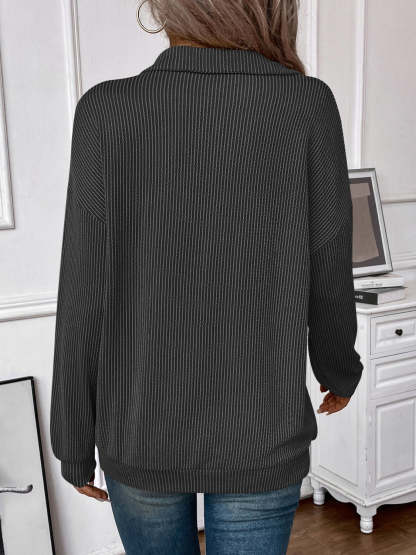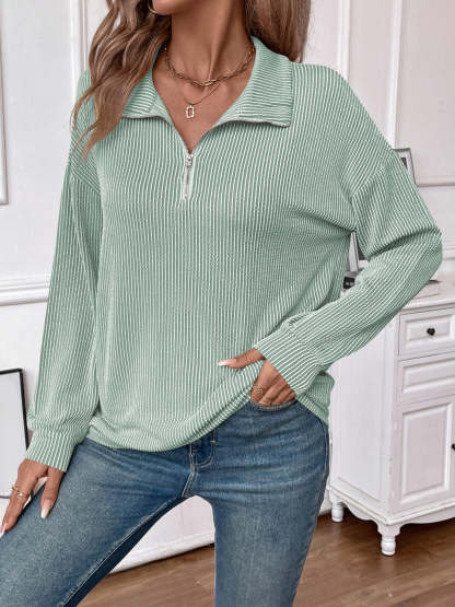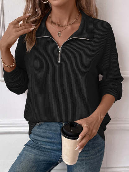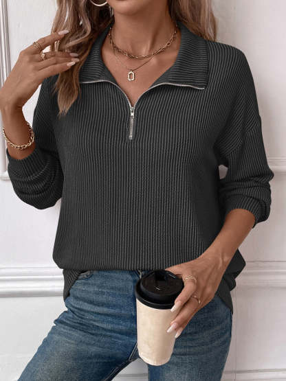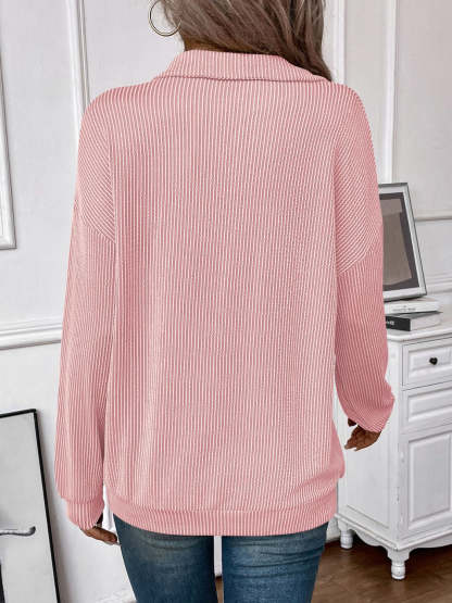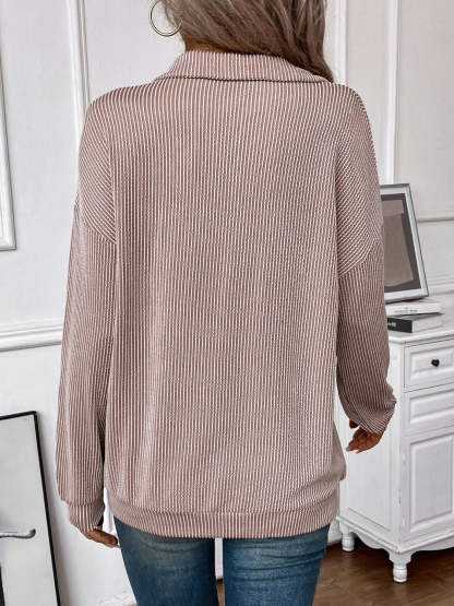 Double Take Striped Half Zip Long Sleeve T-Shirt