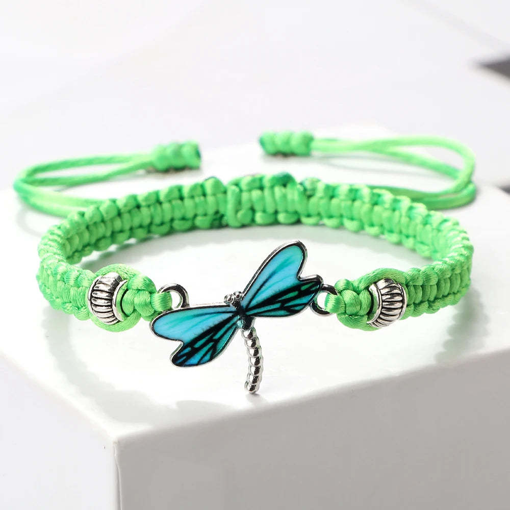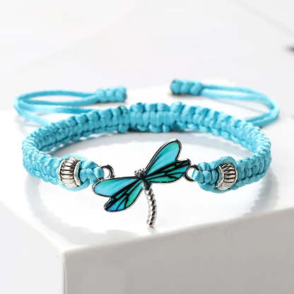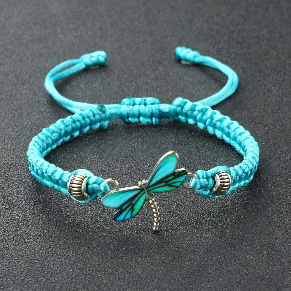 Like a whisper of summer caught in thread and stone, this handwoven bracelet carries the gentle spirit of the dragonfly—a symbol of transformation, adaptability, and the courage to embrace life's beautiful changes. Each delicate knot is woven with intention, creating a piece that feels both grounded and free.