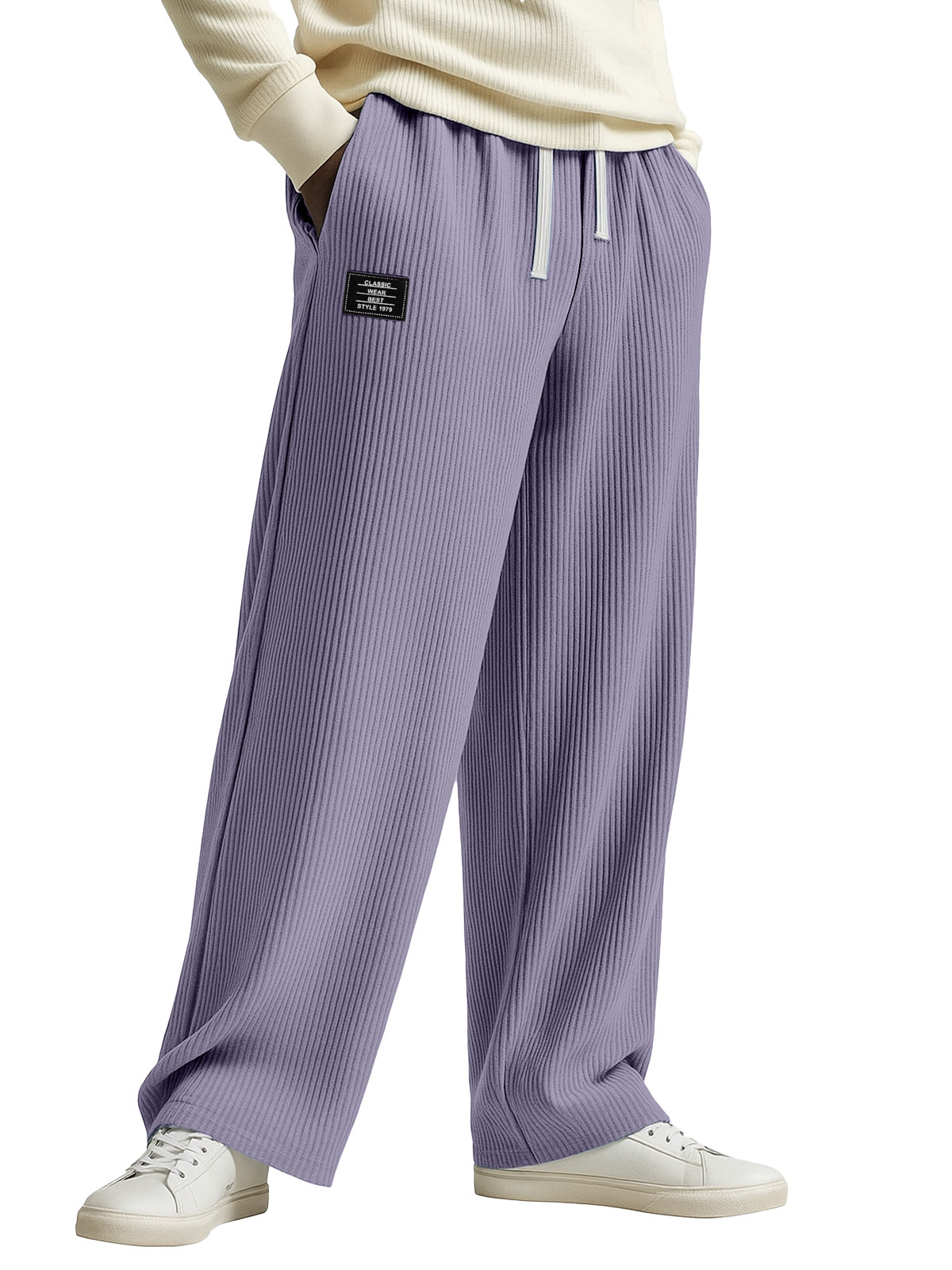 Fashionable And Casual Solid Color Vertical Pit Stripe Loose Trousers