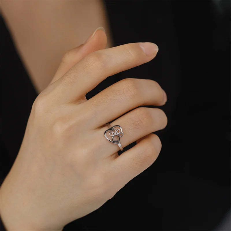This charming Heart Ring with Paw Design is the perfect piece for anyone who wants to wear their love for animals with style. The open heart frame surrounds a finely detailed paw — a symbol of closeness, loyalty, and true connection. Whether as a gift, a statement ring, or a keepsake, this piece blends feeling and elegance in a modern design.