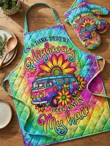 Hippie Van Quilted Apron Set (2-Piece) – Padded Apron + Heat-Resistant Oven Mitts