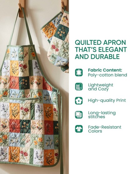 Because the apron and mitts come as a matching set, your kitchen style stays cohesive—whether you’re cooking daily, hosting friends, or prepping for holidays. The quilted texture adds that cozy, elevated “handmade” vibe that instantly makes a kitchen feel warmer.