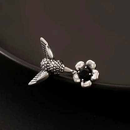 Capture the beauty of nature with this hummingbird and flower open ring. Handmade with detailed craftsmanship, the design features a flying hummingbird reaching toward a flower set with a sparkling stone. Its adjustable open band ensures a comfortable fit, making it both stylish and practical for daily wear.