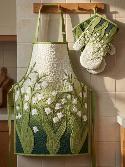 Lily Of The Valley Quilted Apron Set (2-Piece) – Padded Apron + Heat-Resistant Oven Mitts