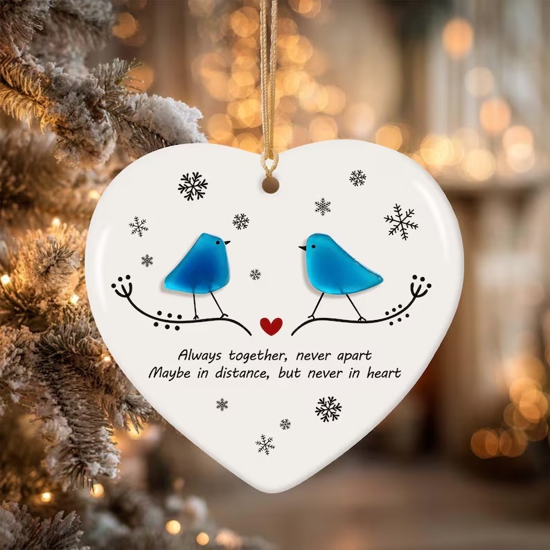 Long Distance Relationship Christmas Sea Glass Ornament