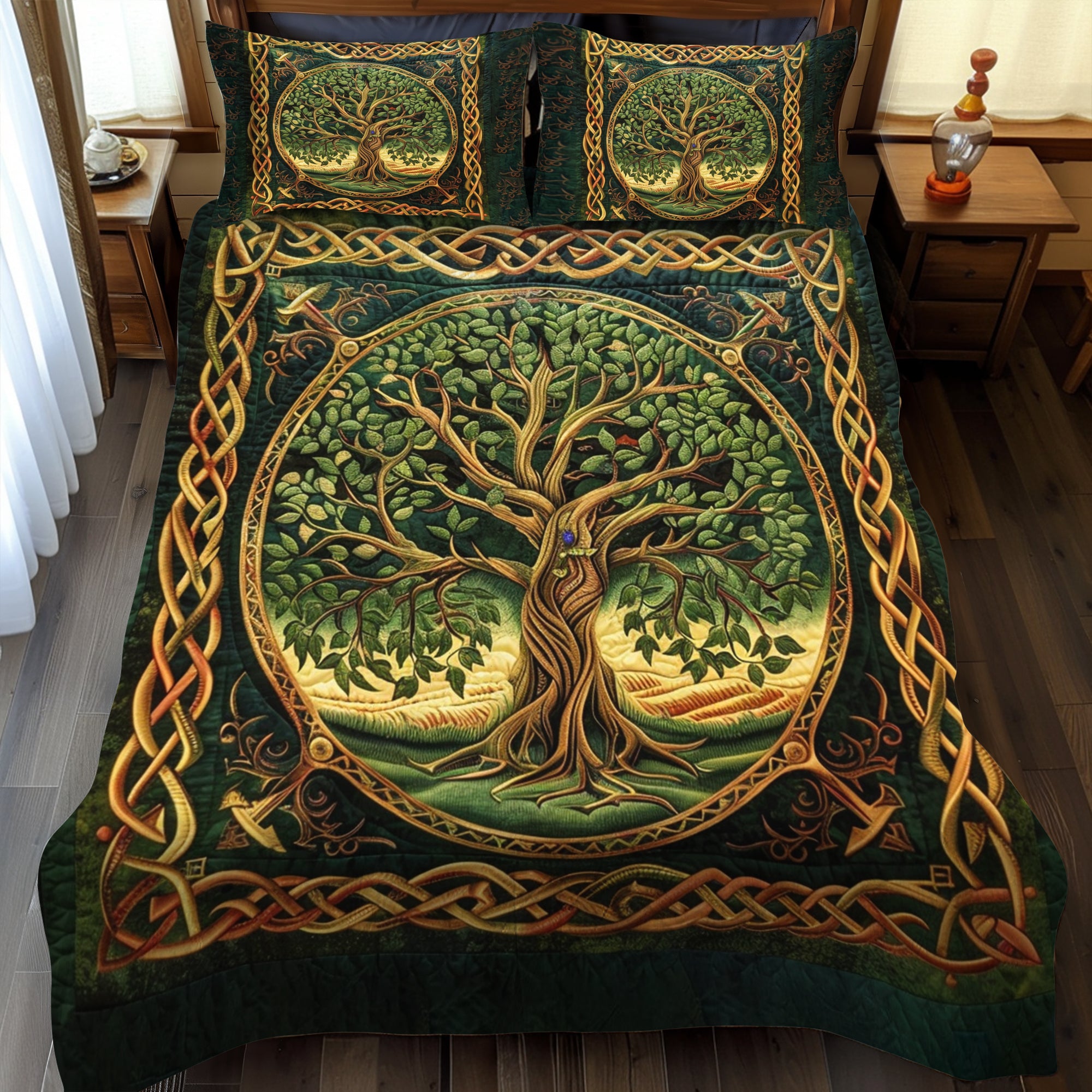 Majestic Tree of Life Celtic 3-Piece Quilted Bedding Set NCU0PD046