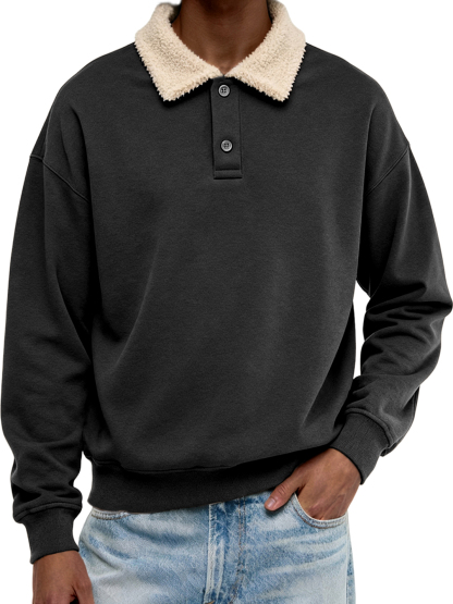 Men's Casual Sherpa Patchwork Collar Christmas Button-down Polo Shirt