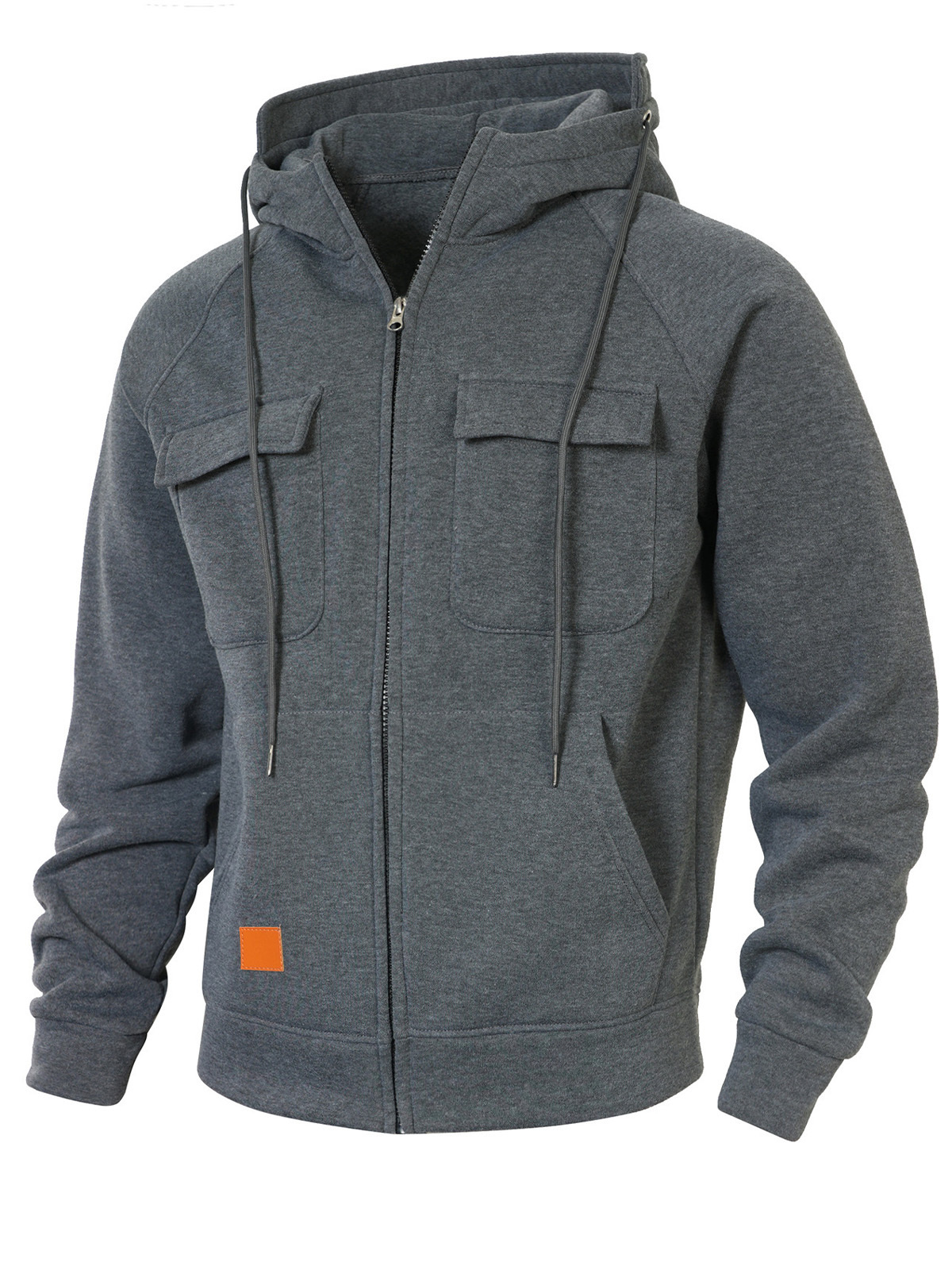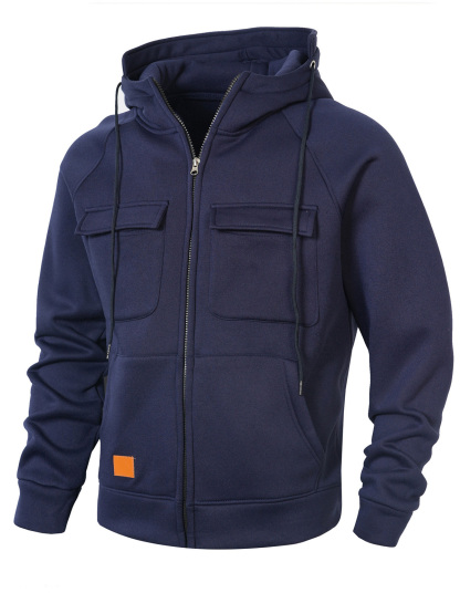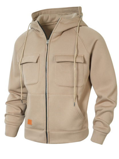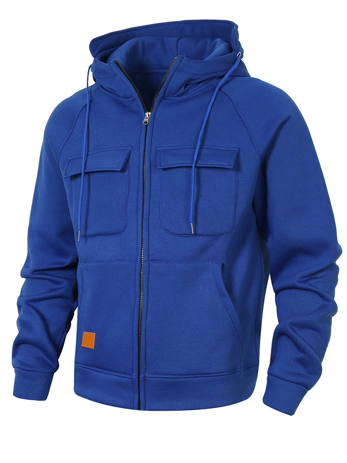 Men's Casual Solid Color Multi-pocket Hooded Cardigan Zipper Jacket