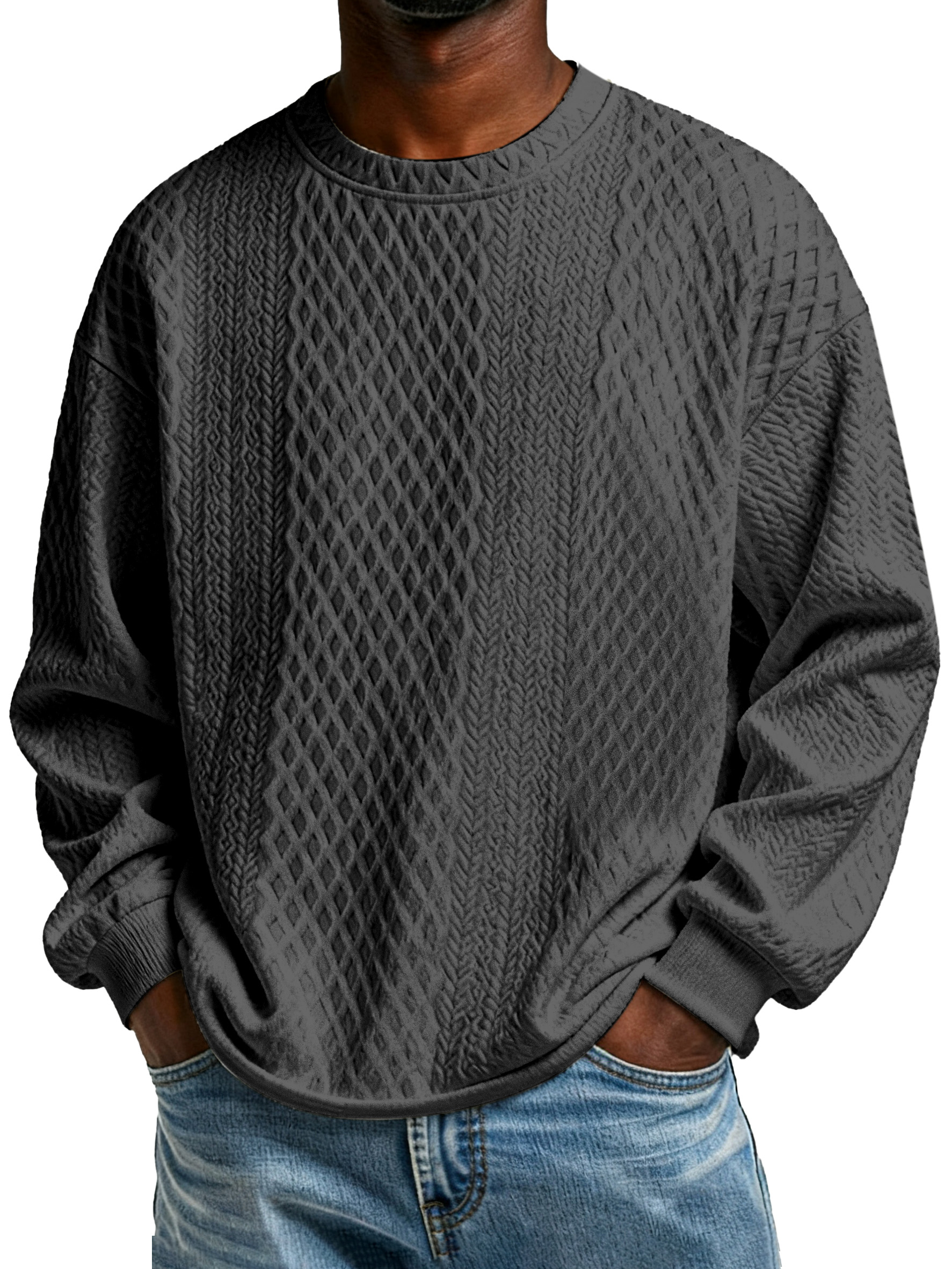 Men's Casual Solid Color Texture Long-sleeved T-shirt