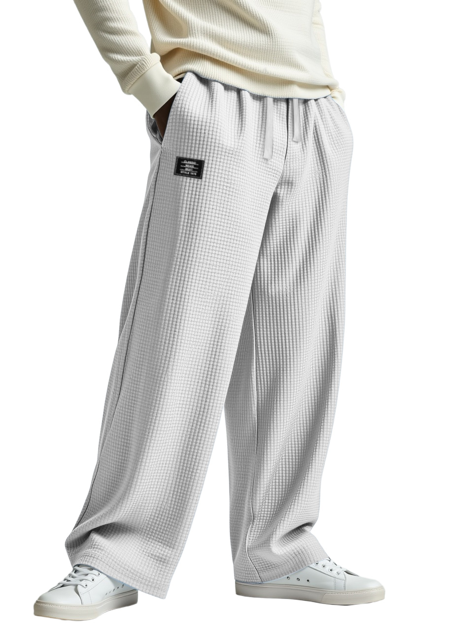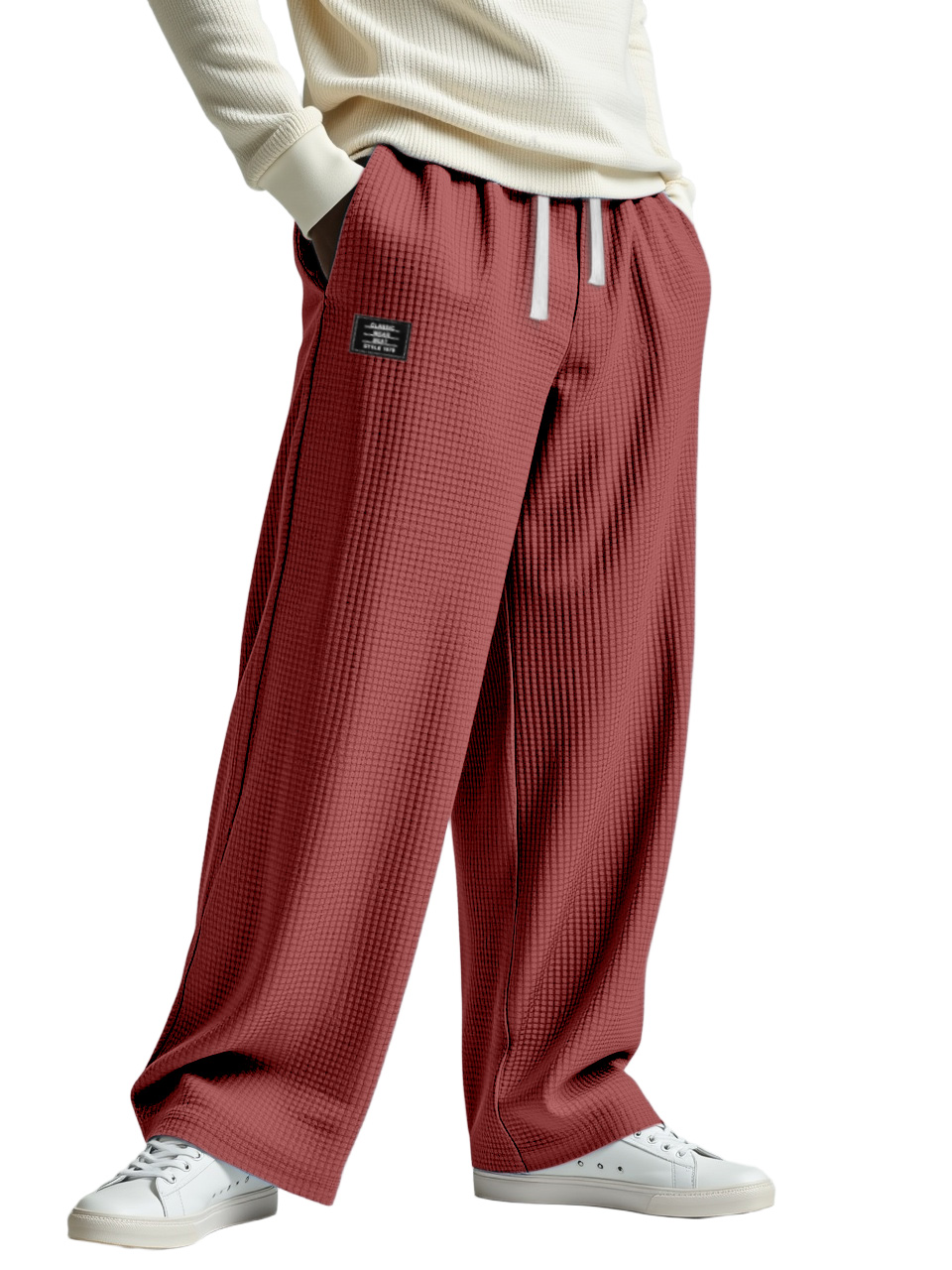 Men's Casual Solid Color Waffle Logo Loose Trousers