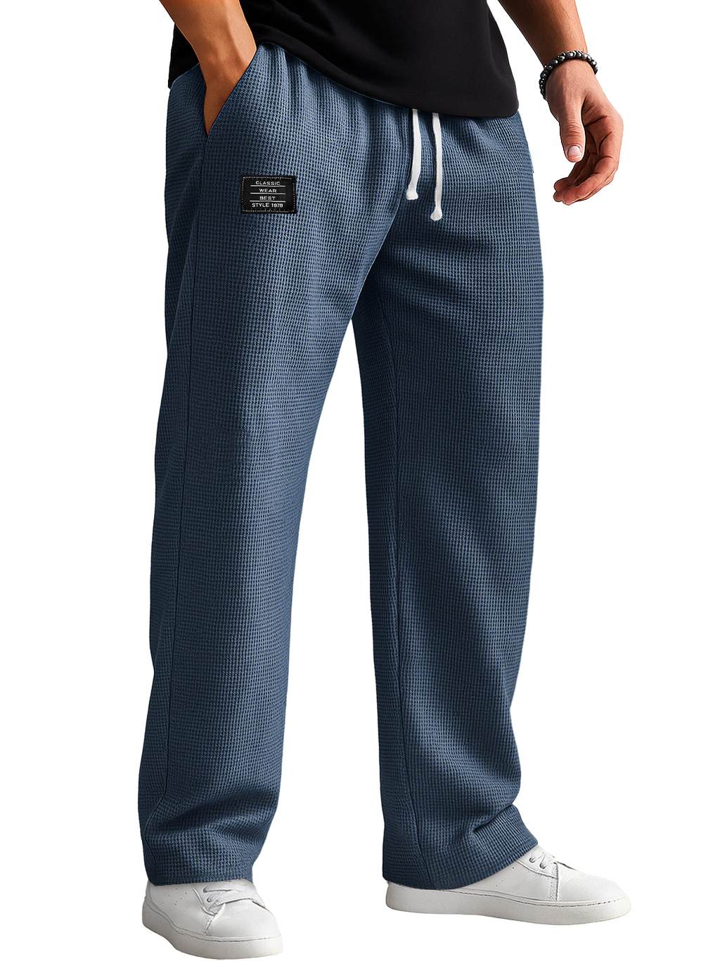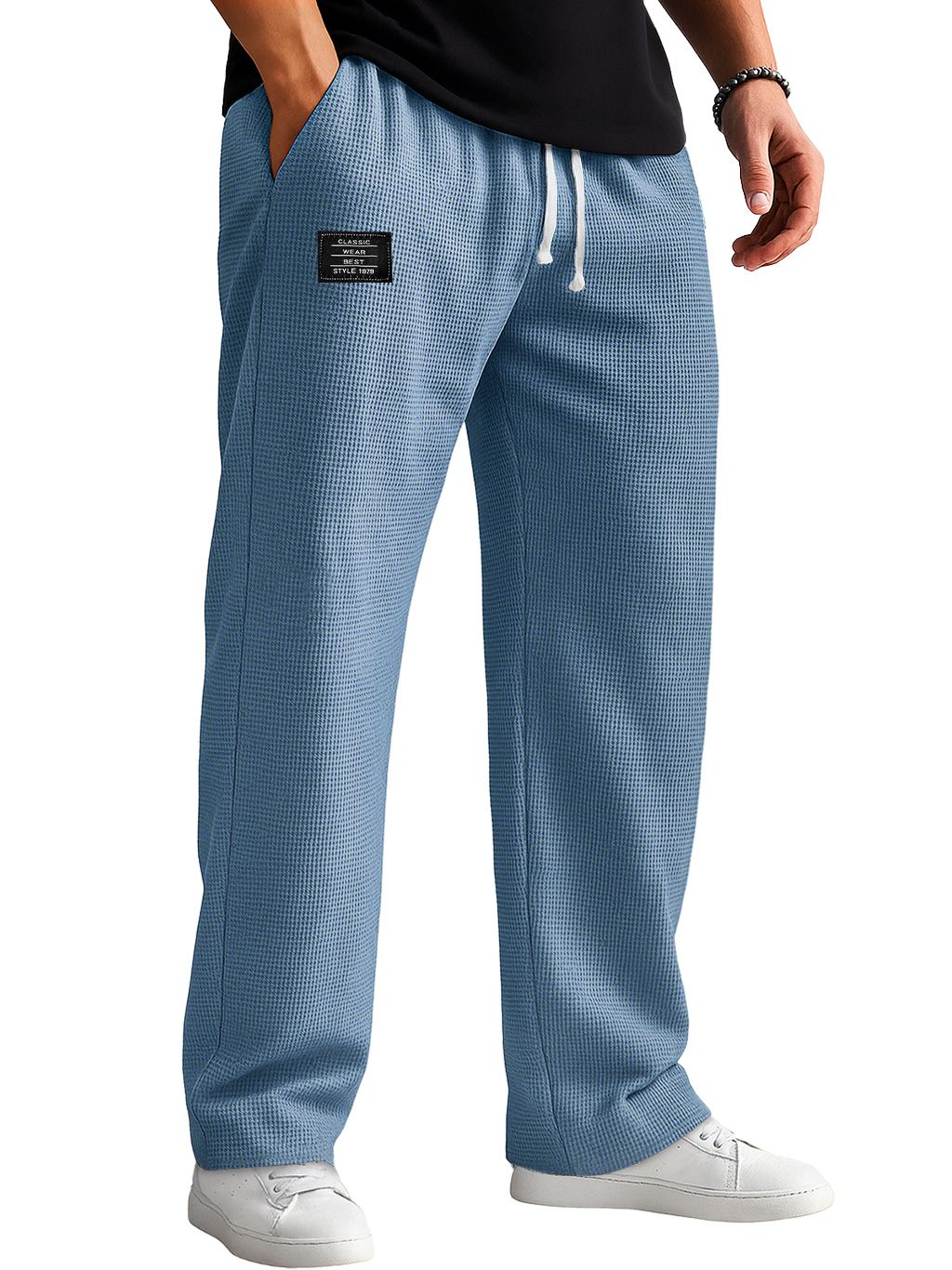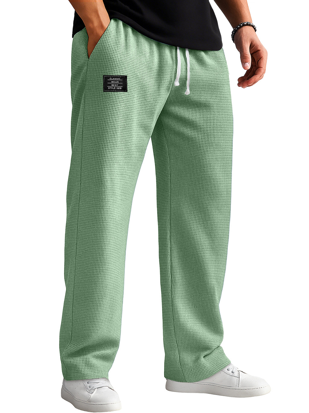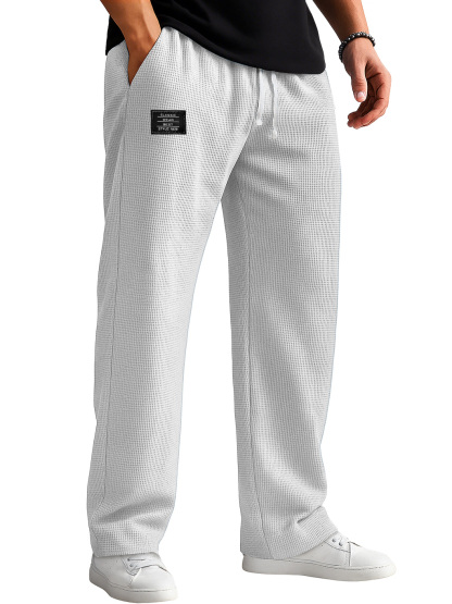 Men's Casual Waffle Embroidered Logo Elastic Waist Loose And Comfortable Trousers