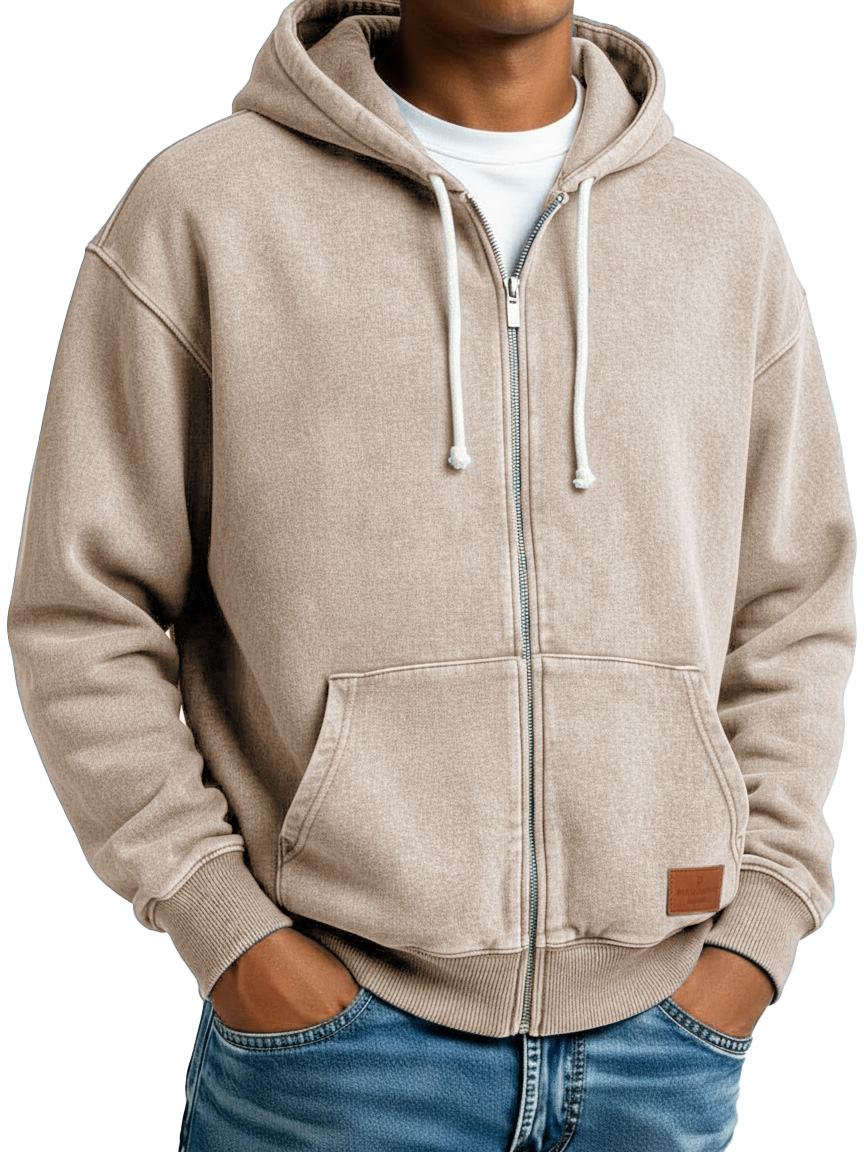 Men's Clothing Fashion Retro Vintage Embroidery Logo Leather Card Long-sleeved Cardigan Pocket Hoodie