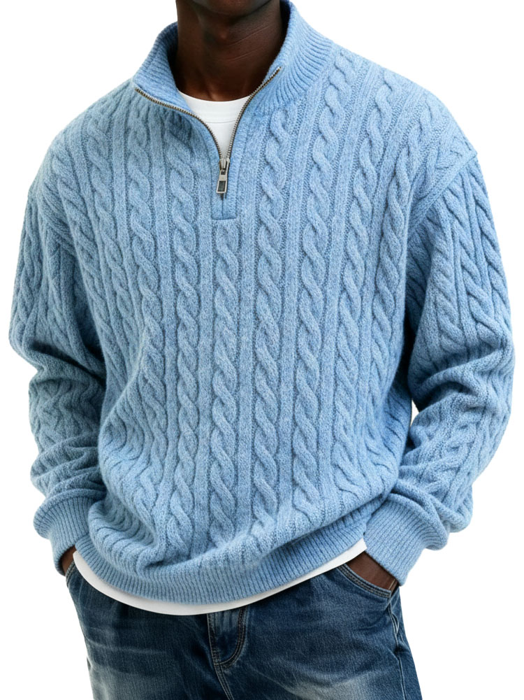 Men's Clothing Fashionable Casual Twist Texture Fabric Semi-zipper Stand-neck Top