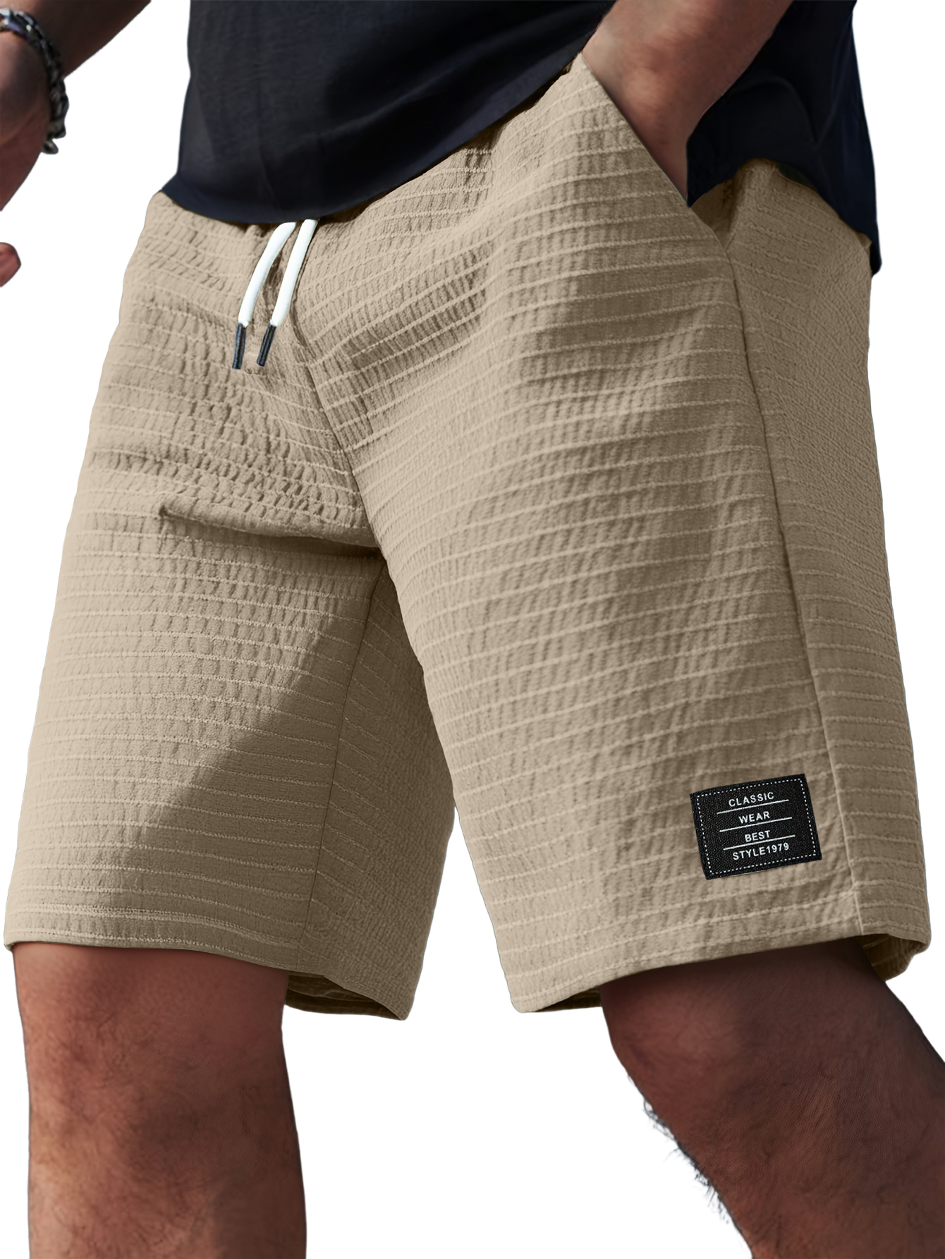 Men's Simple Solid Color Vertical Strip Fashion Casual Shorts