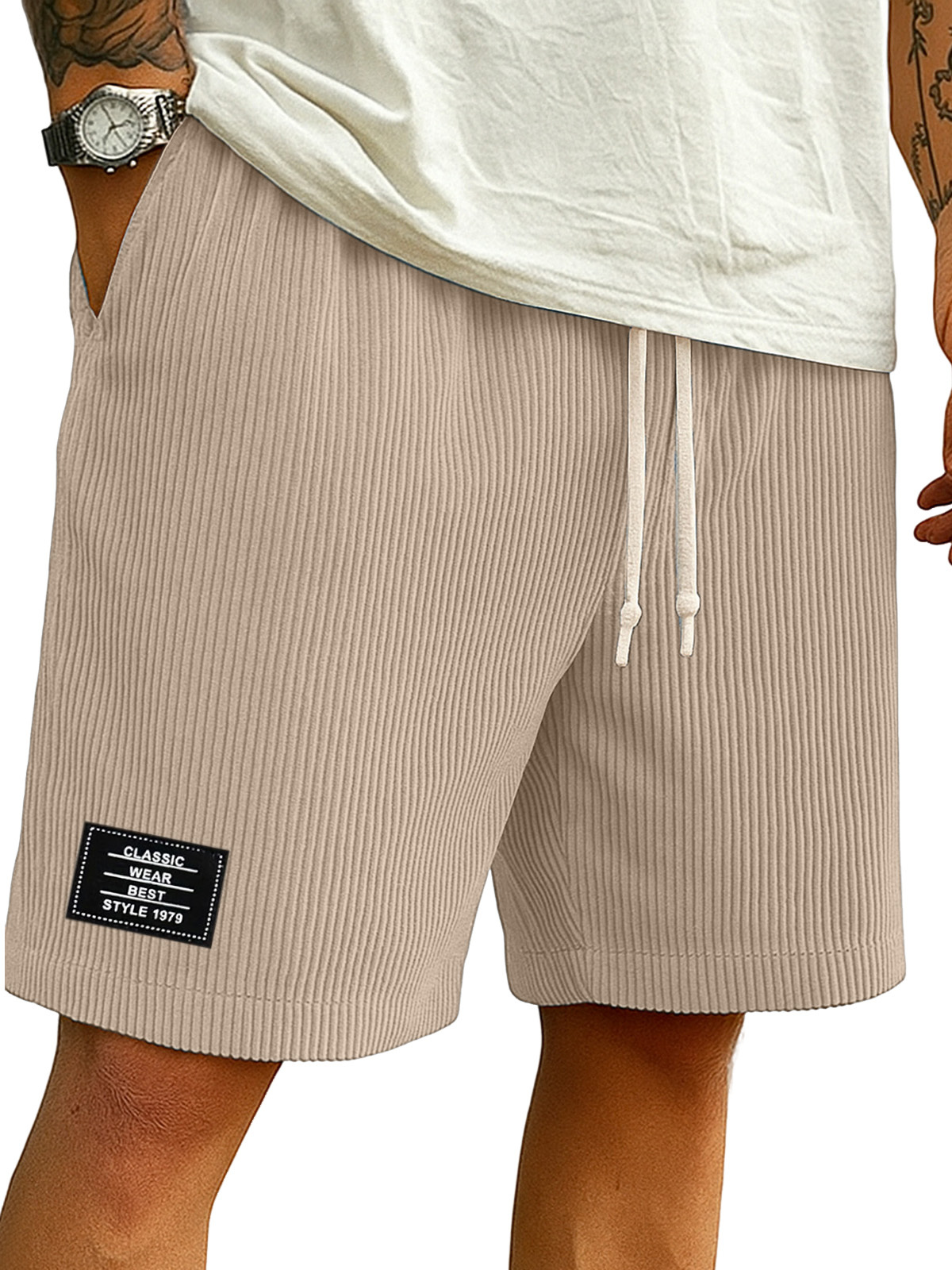 Men's Retro Fashion Corduroy Logo Simple Casual Shorts