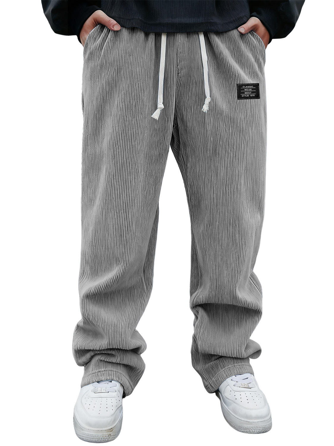 Men's Corduroy Embroidered Logo Casual Loose-fitting Trousers