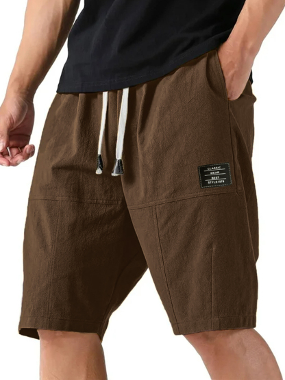 Men's Cotton Linen Stylish Casual Lace-up Shorts with Embroidered Label
