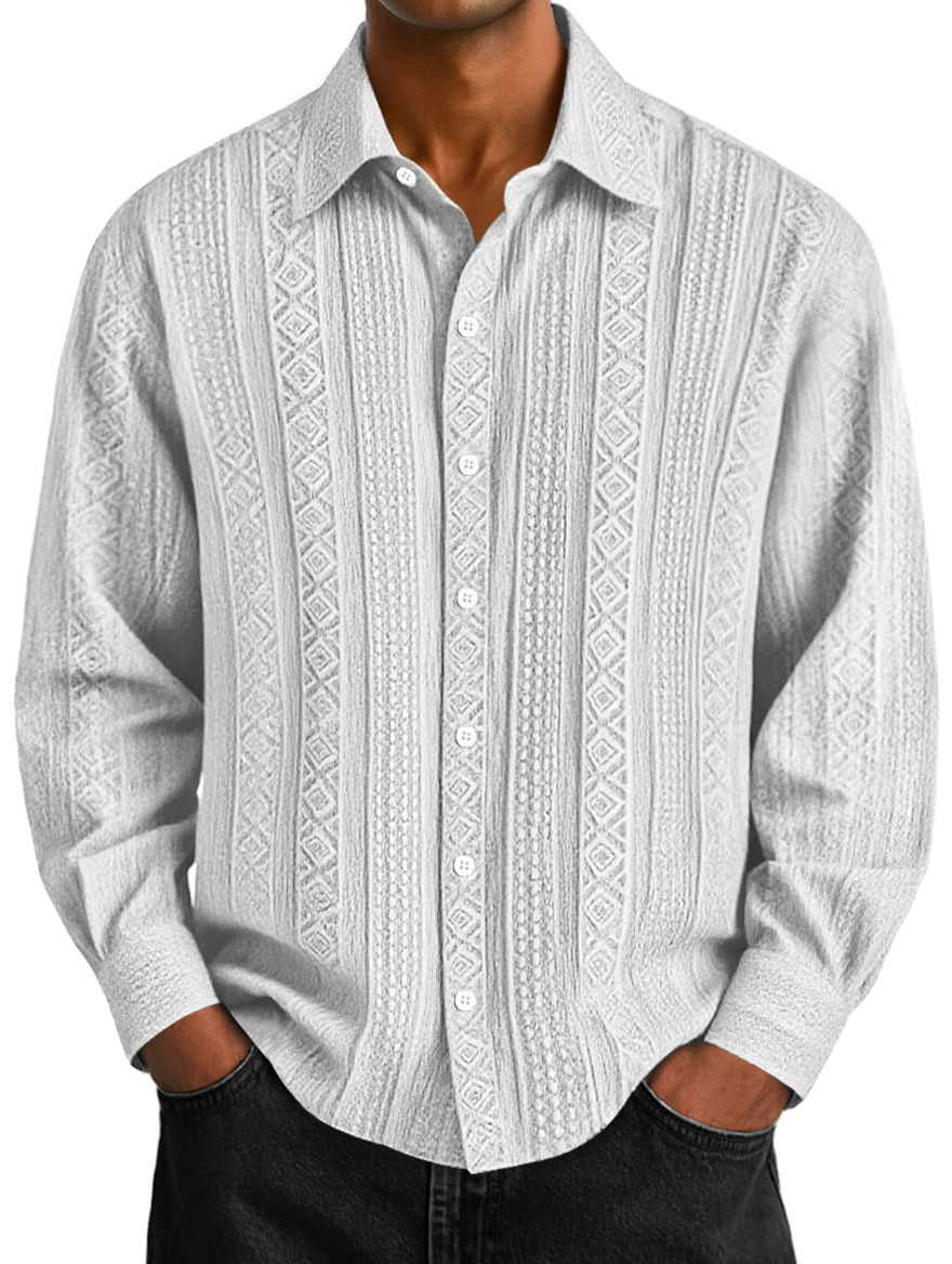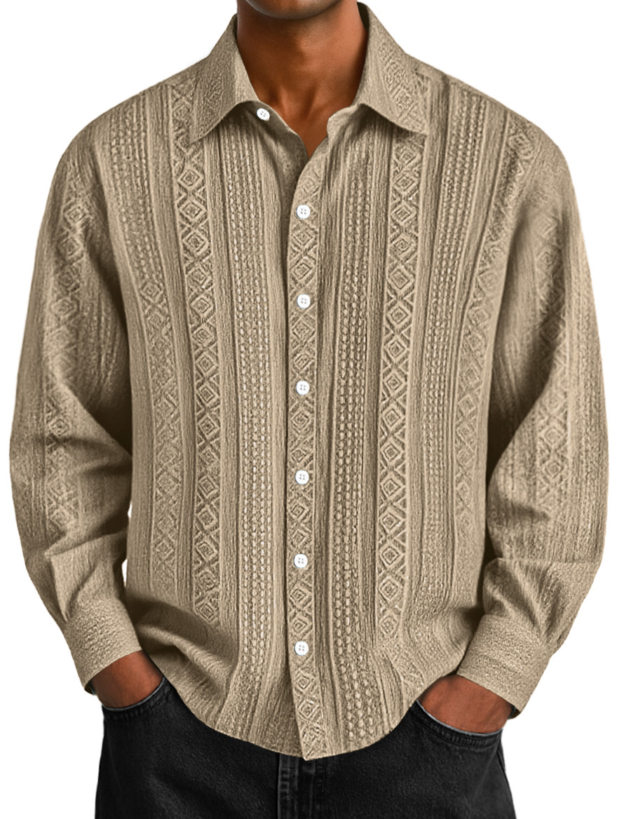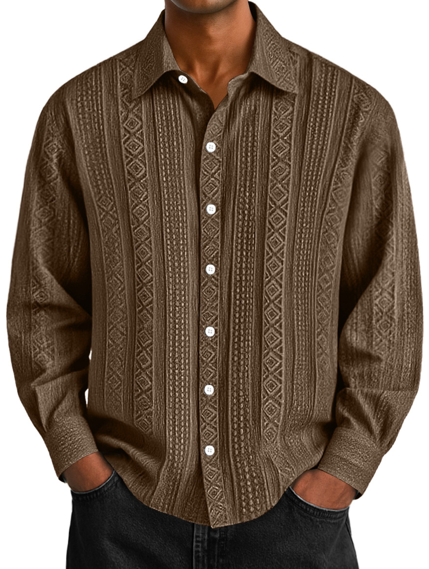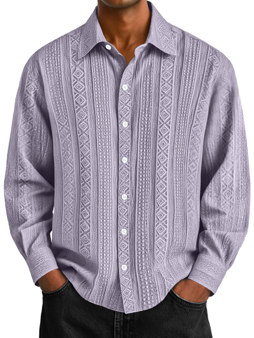 Men's Daily Jacquard Texture Casual Solid Color Long-sleeved Shirt