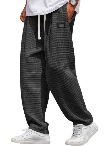 Men's Everyday Casual Waffle Embroidered Logo Loose Solid Color Trousers