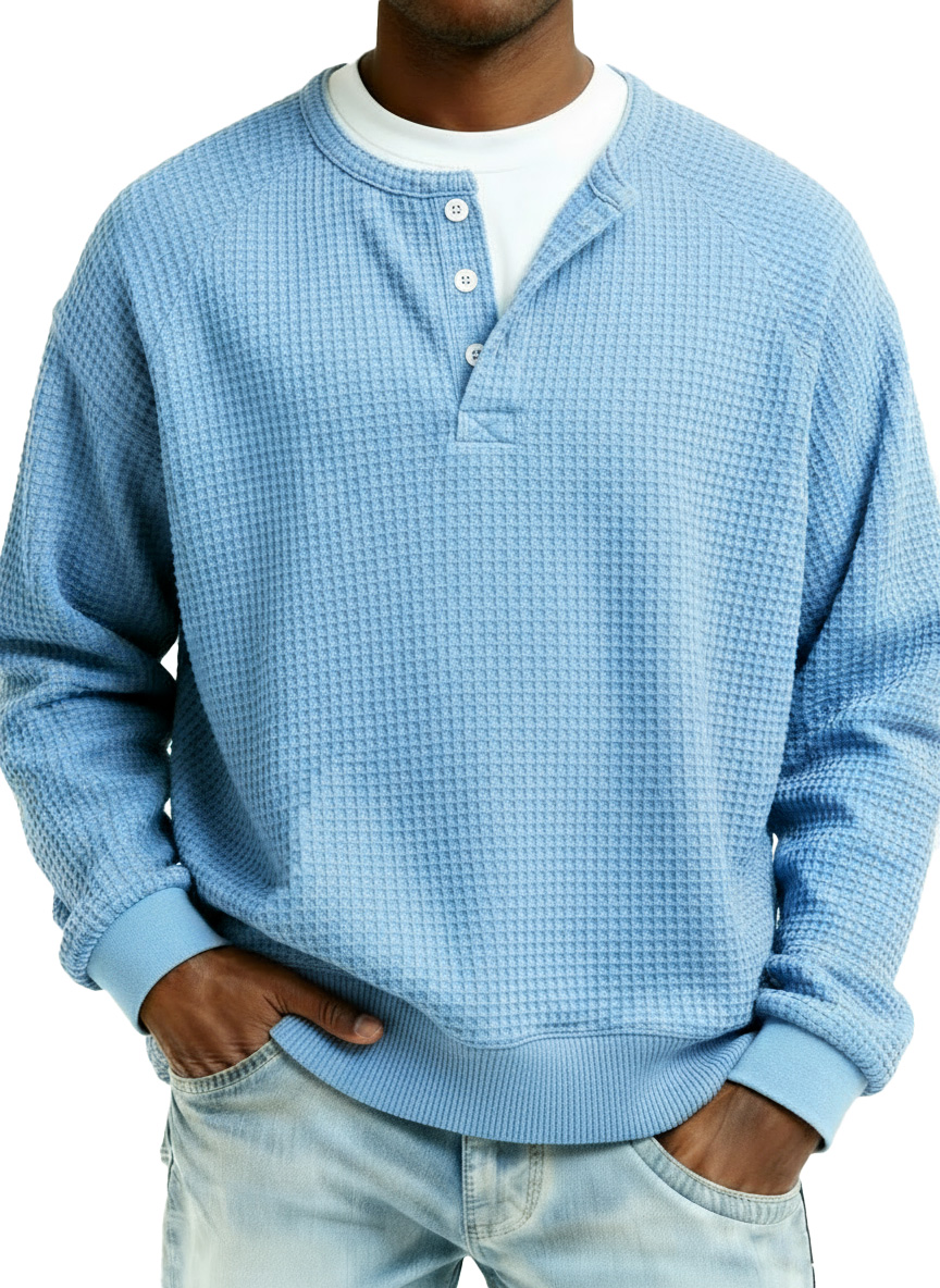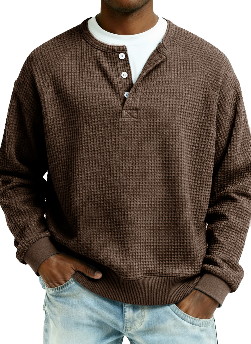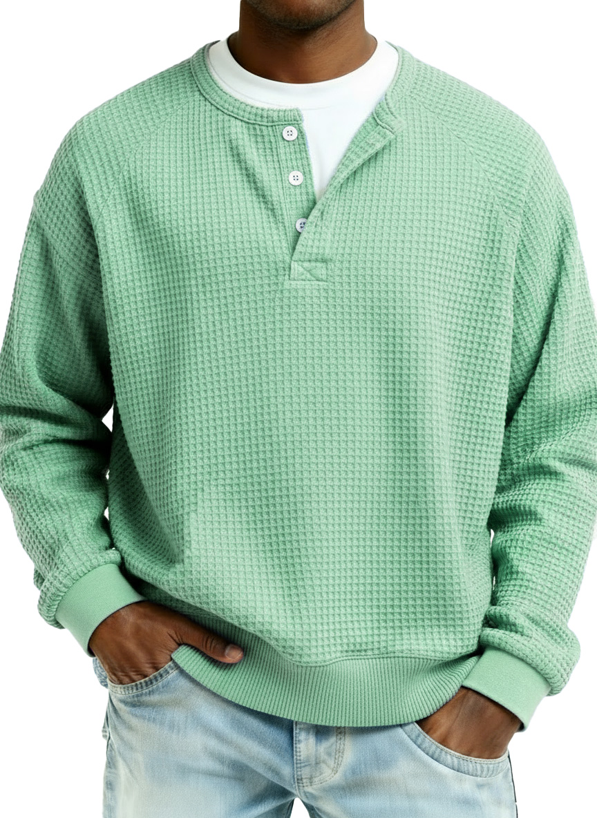 Men's Fashion Casual Waffle Fabric Raglan Long-Sleeve Top