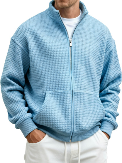 Men's Fashion Casual Waffle Fabric Stand Collar Long-Sleeve Pocket Sweatshirt