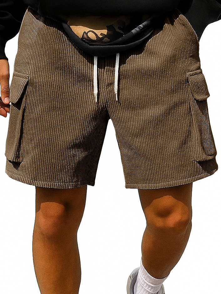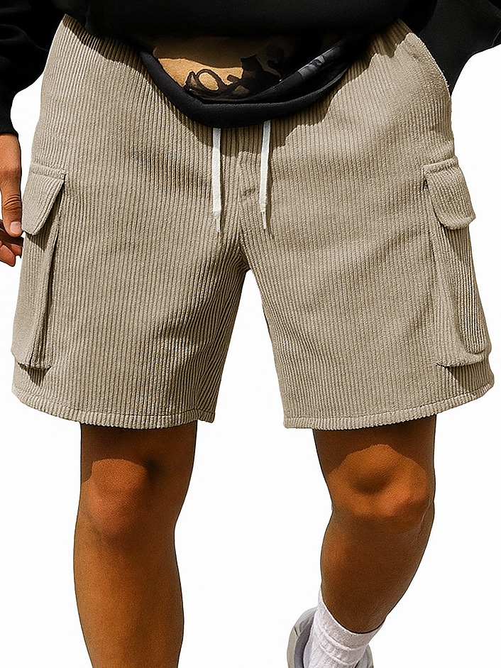 Men's Fashion Retro Outdoor Workwear Pocket Elastic Waist Drawstring Shorts