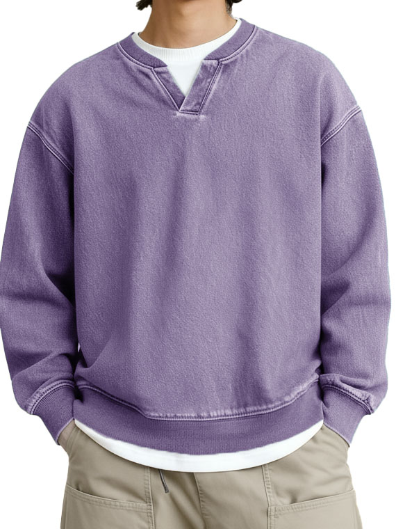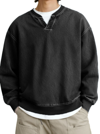 Men's Retro Stand Collar Zipper Casual Loose Solid Color Long Sleeve T-shirt