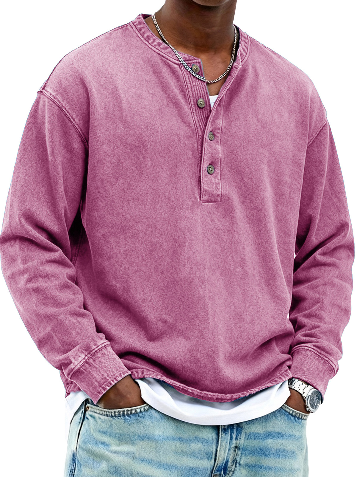 Men's Fashionable Retro Stand Collar Button-Up Long-Sleeved Henley Shirt